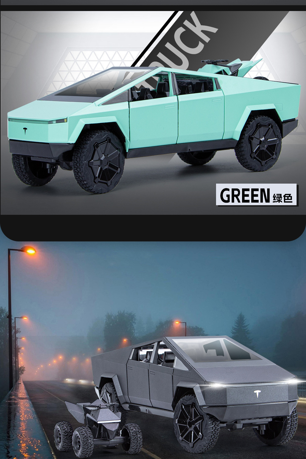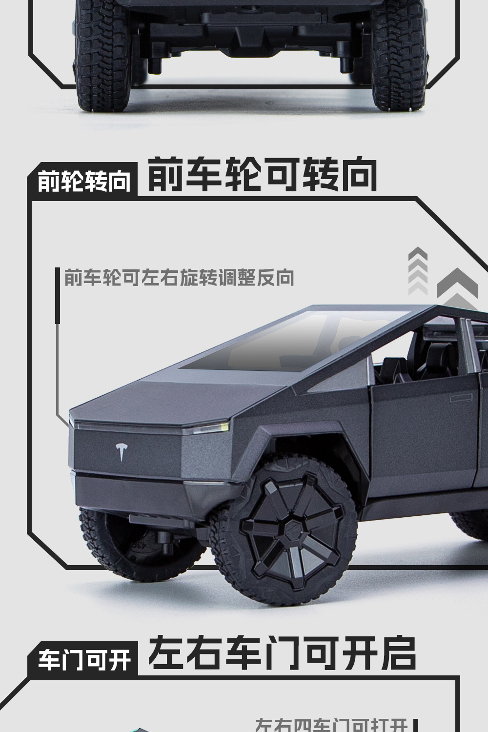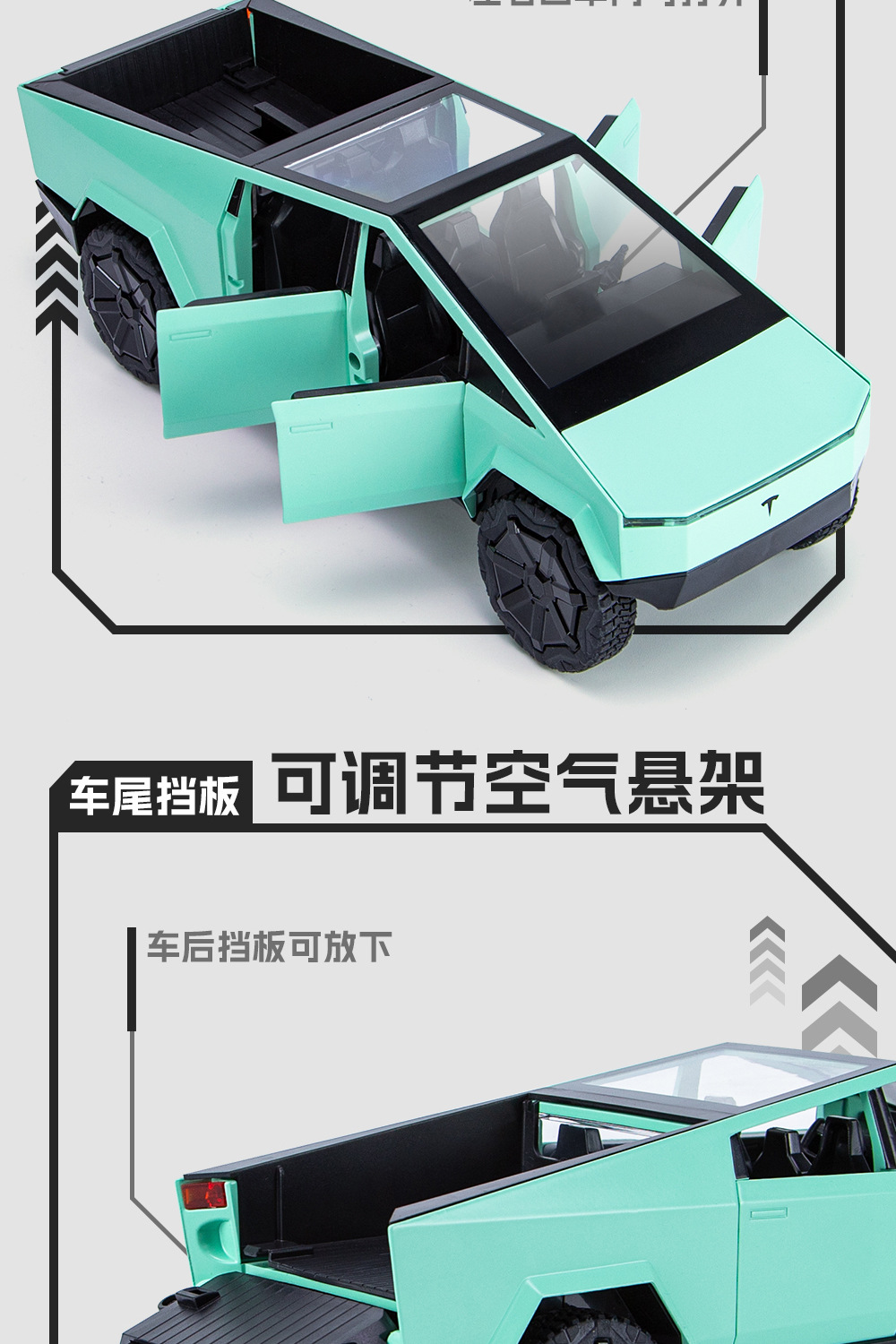새로운 Howdy 1:24 Tesla 픽업 ATV 합금 모델 도어 오프닝 사운드 및 라이트 백 포스 충격 방지 스티어링 오토바이스토어 가기