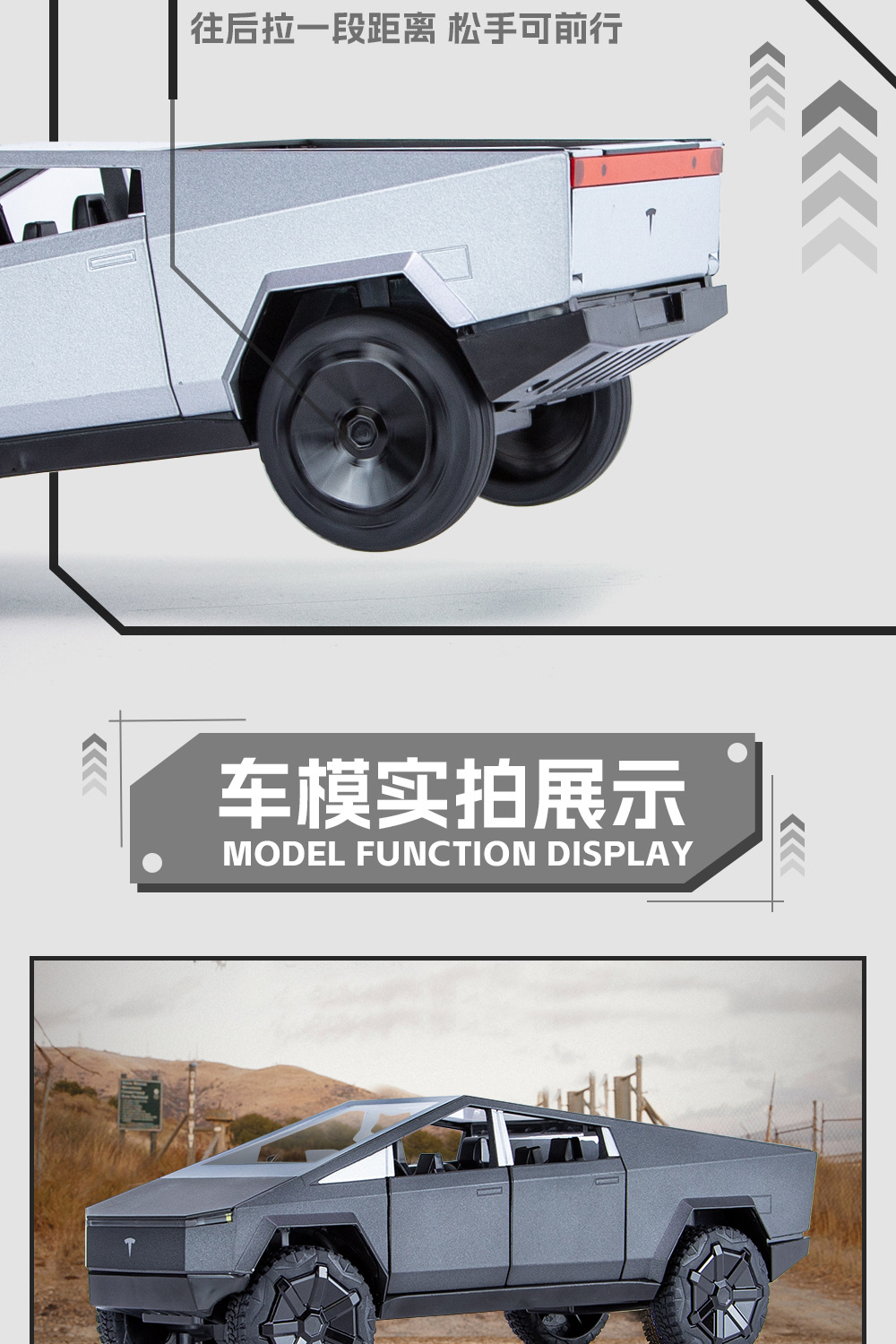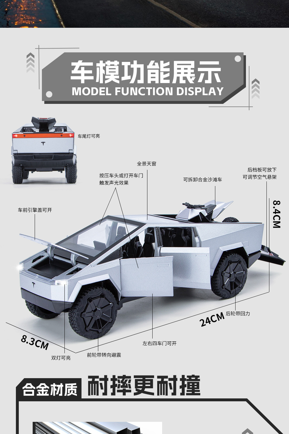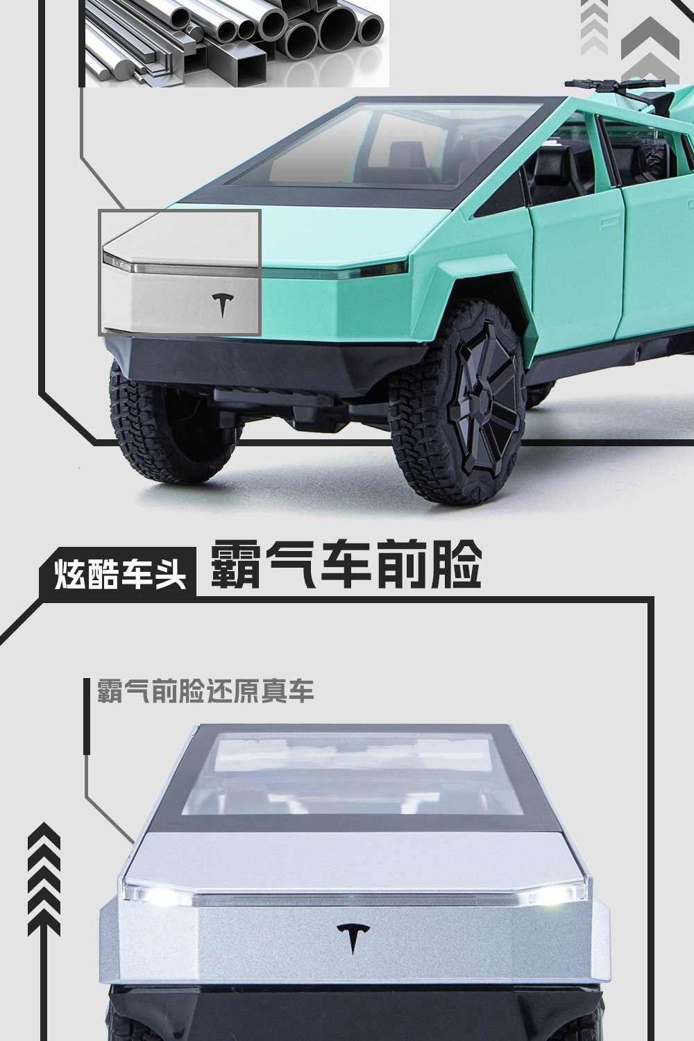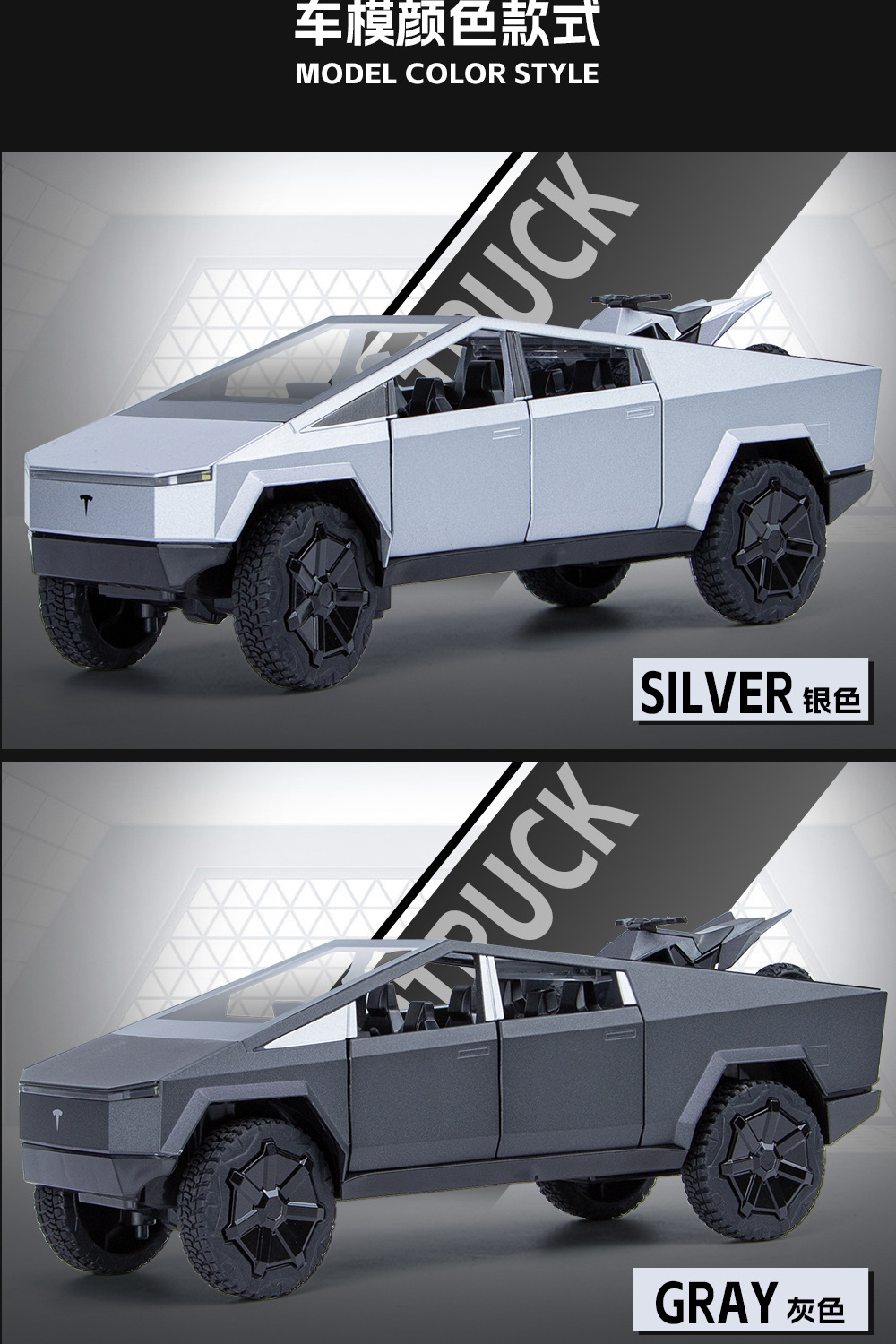 새로운 Howdy 1:24 Tesla 픽업 ATV 합금 모델 도어 오프닝 사운드 및 라이트 백 포스 충격 방지 스티어링 오토바이스토어 가기