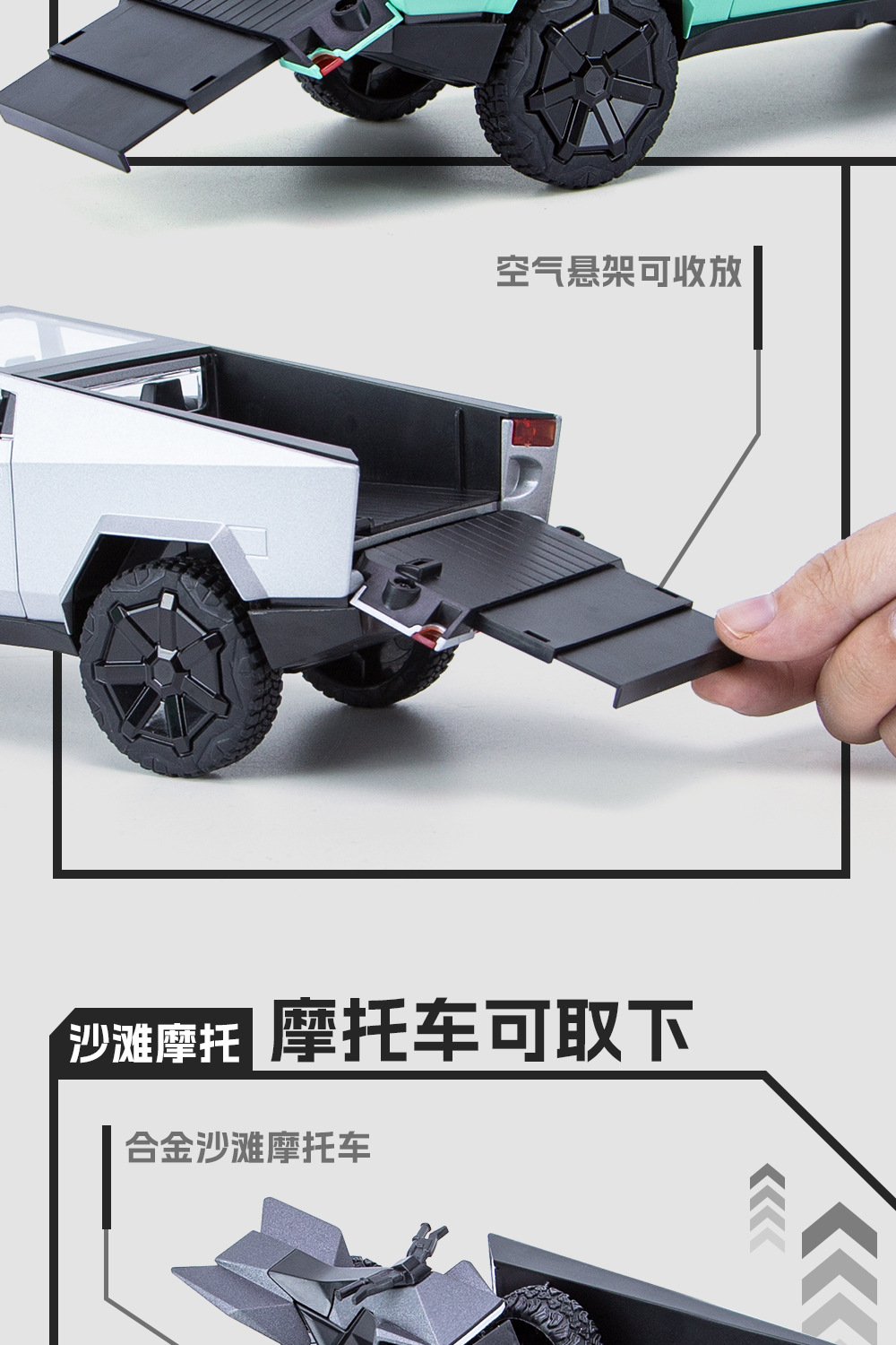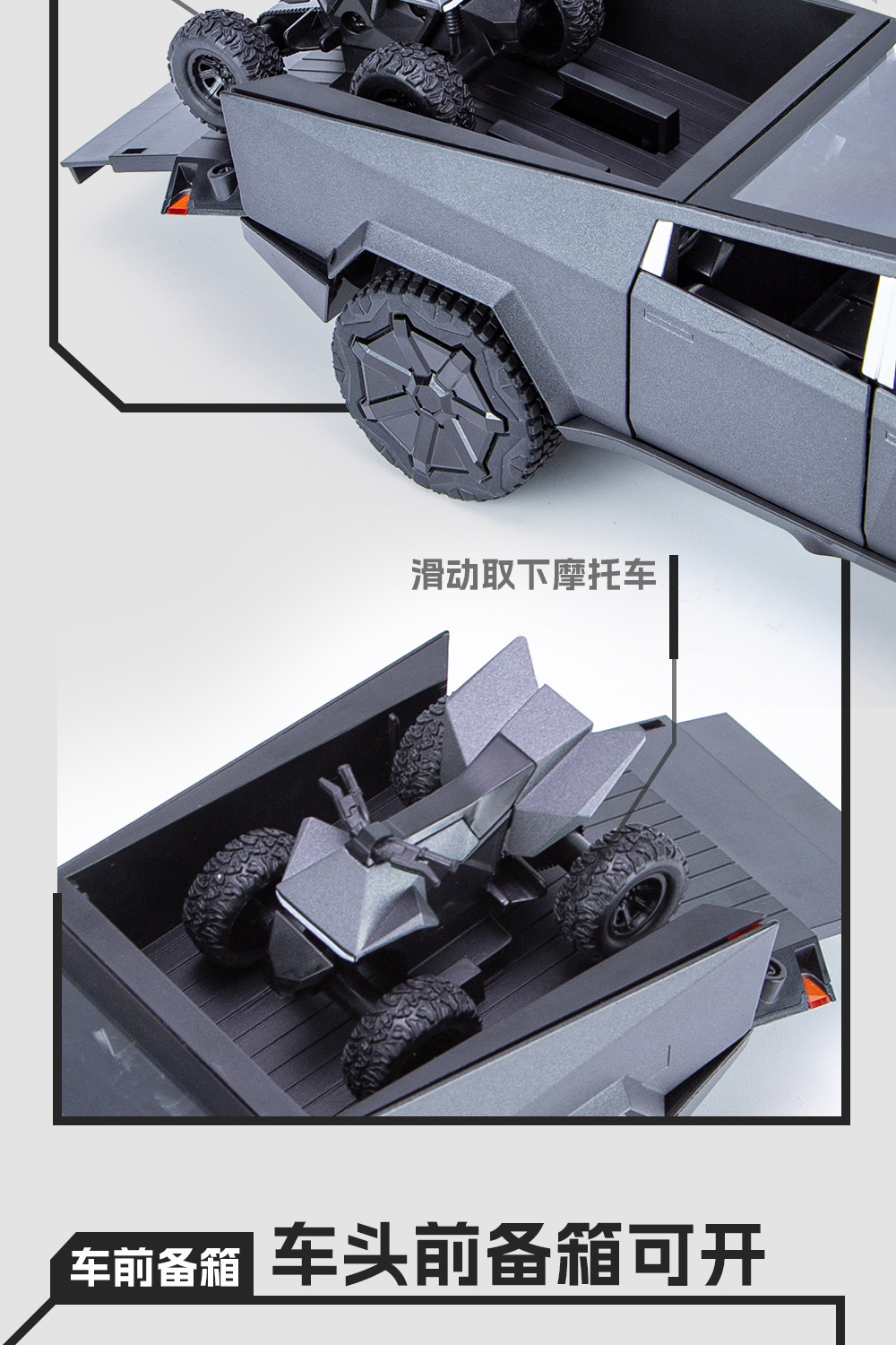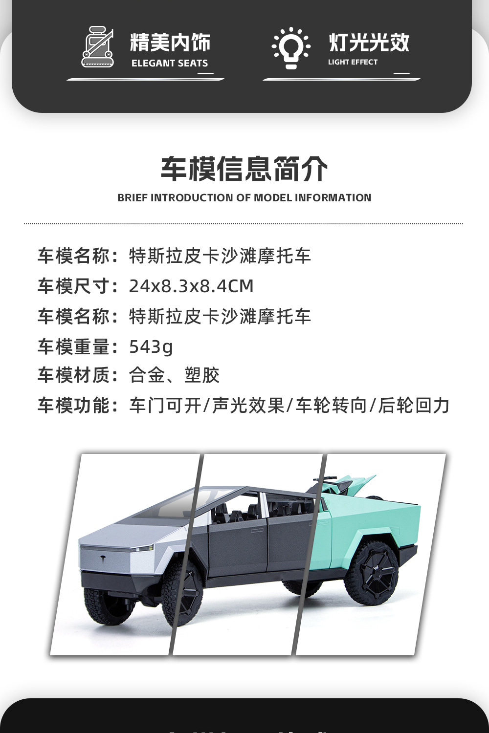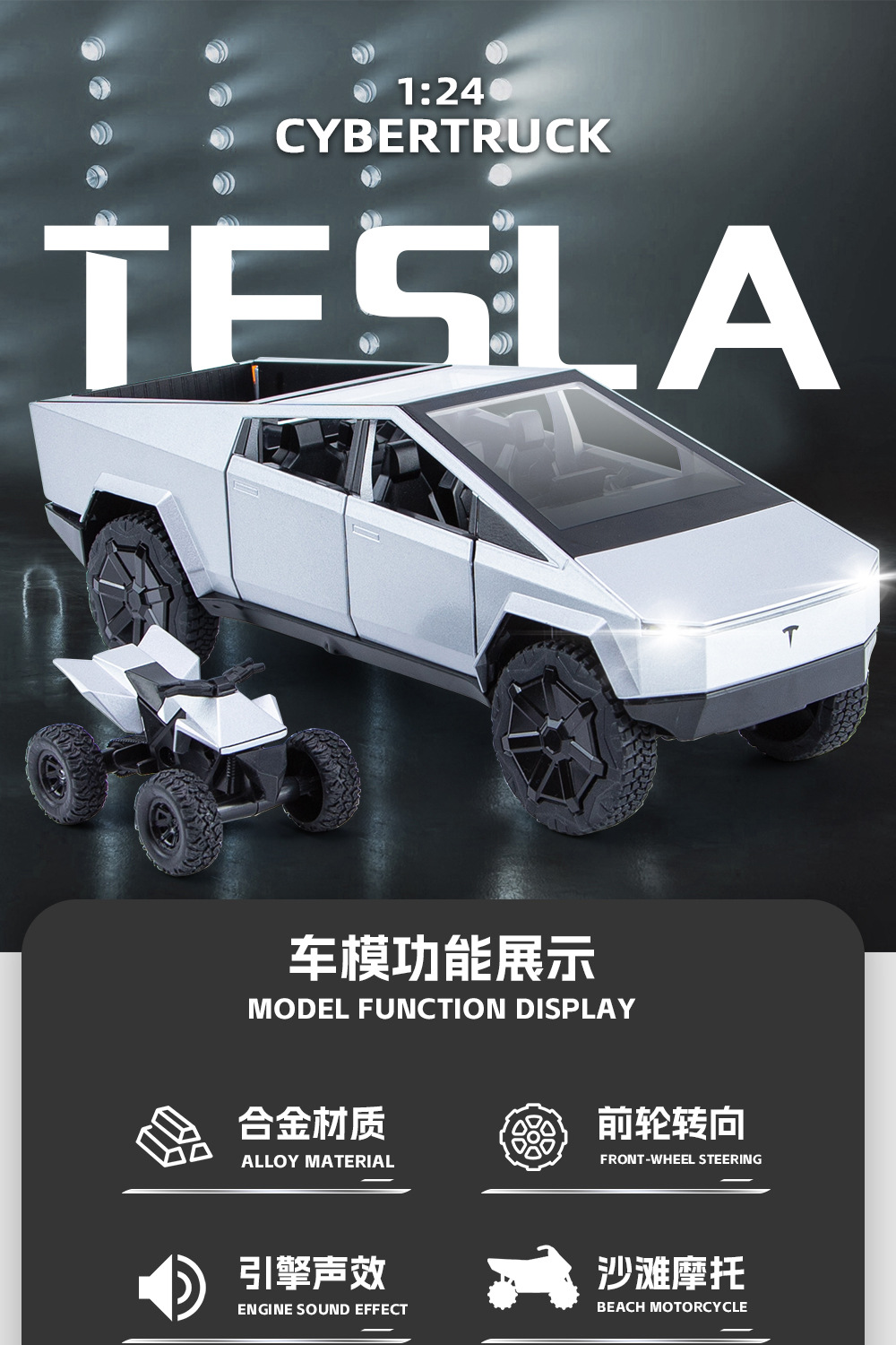 새로운 Howdy 1:24 Tesla 픽업 ATV 합금 모델 도어 오프닝 사운드 및 라이트 백 포스 충격 방지 스티어링 오토바이
