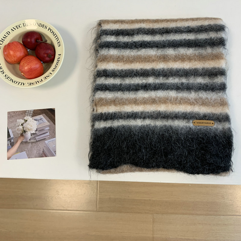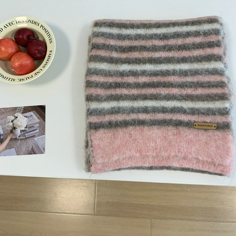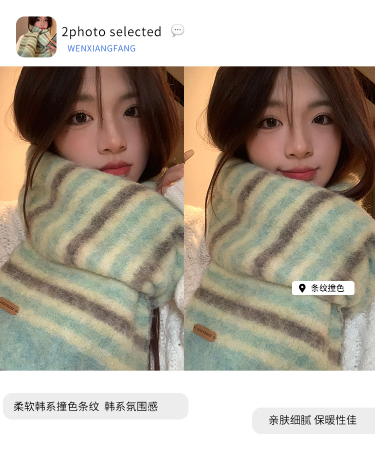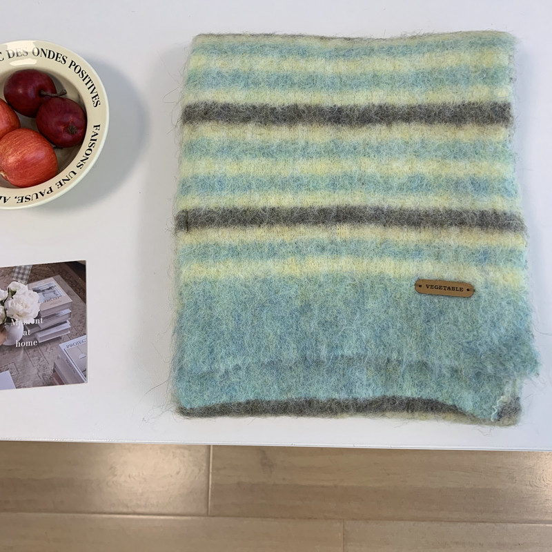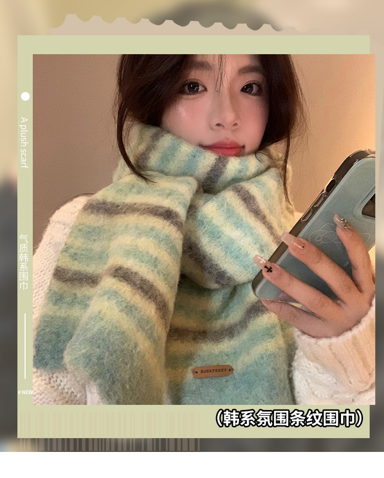 녹색 줄무늬 스카프 여성의 가을과 겨울 한국 스타일 분위기 따뜻한 따뜻한 목도리 2024 새로운 스타일스토어 가기