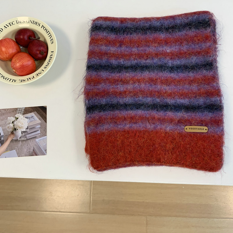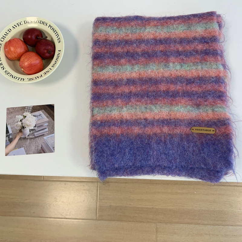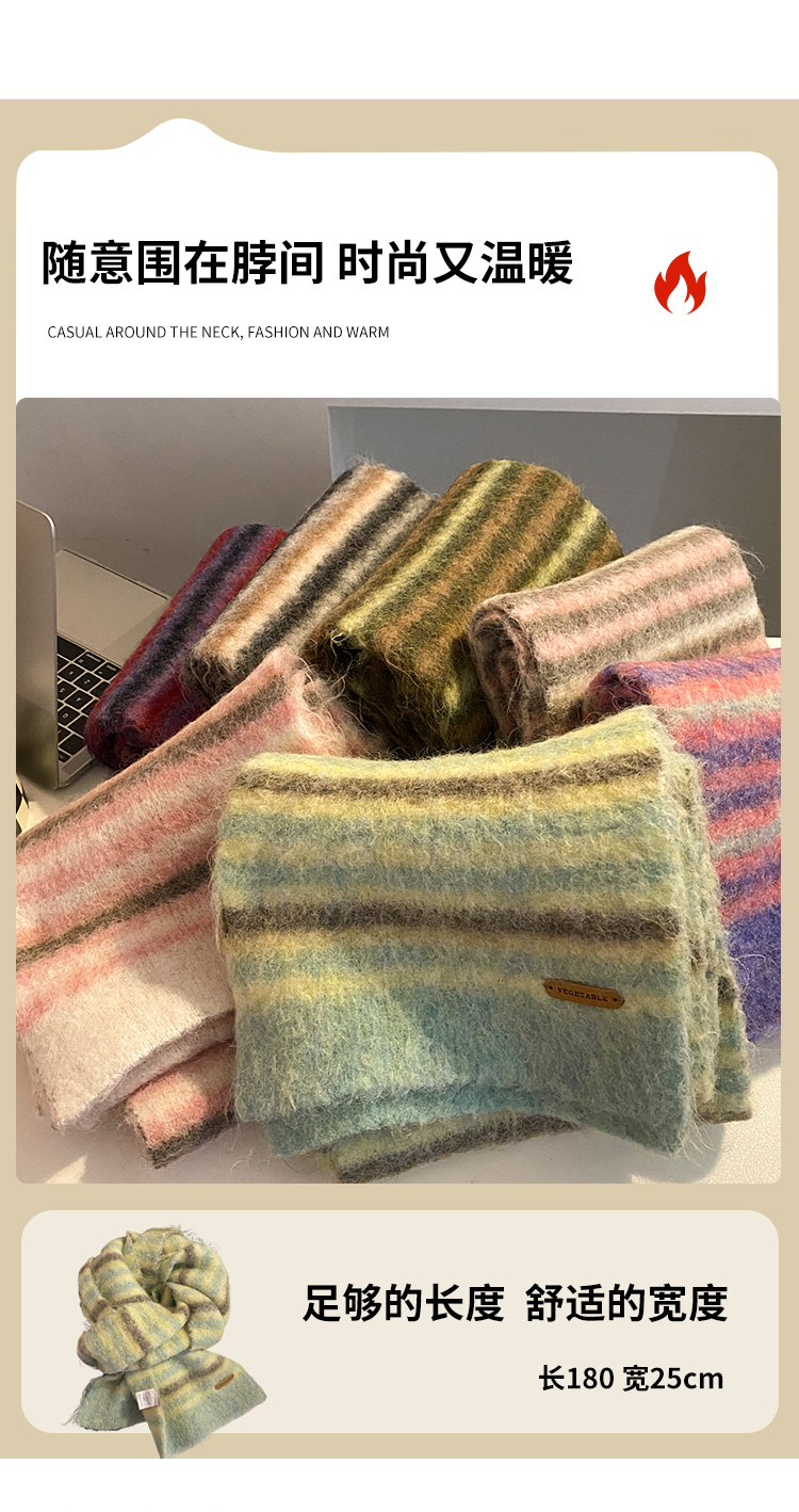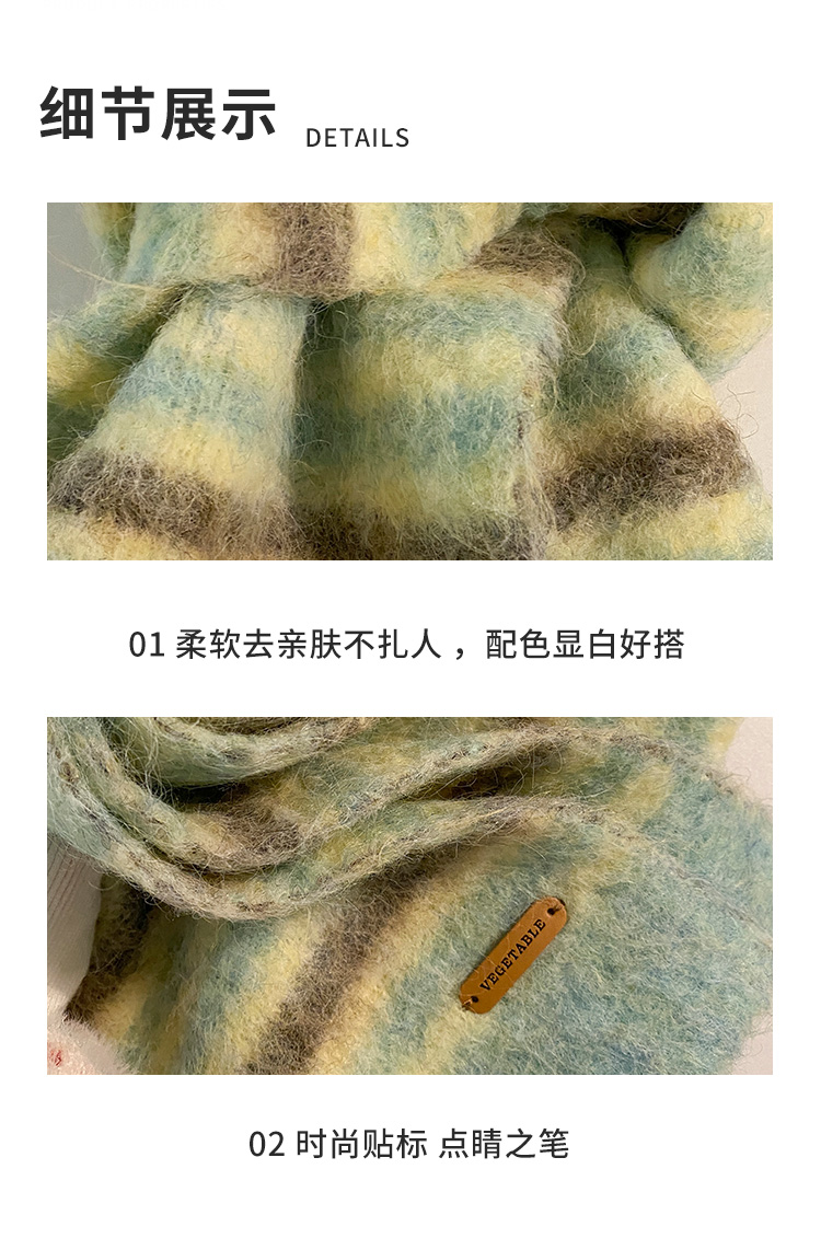 녹색 줄무늬 스카프 여성의 가을과 겨울 한국 스타일 분위기 따뜻한 따뜻한 목도리 2024 새로운 스타일스토어 가기