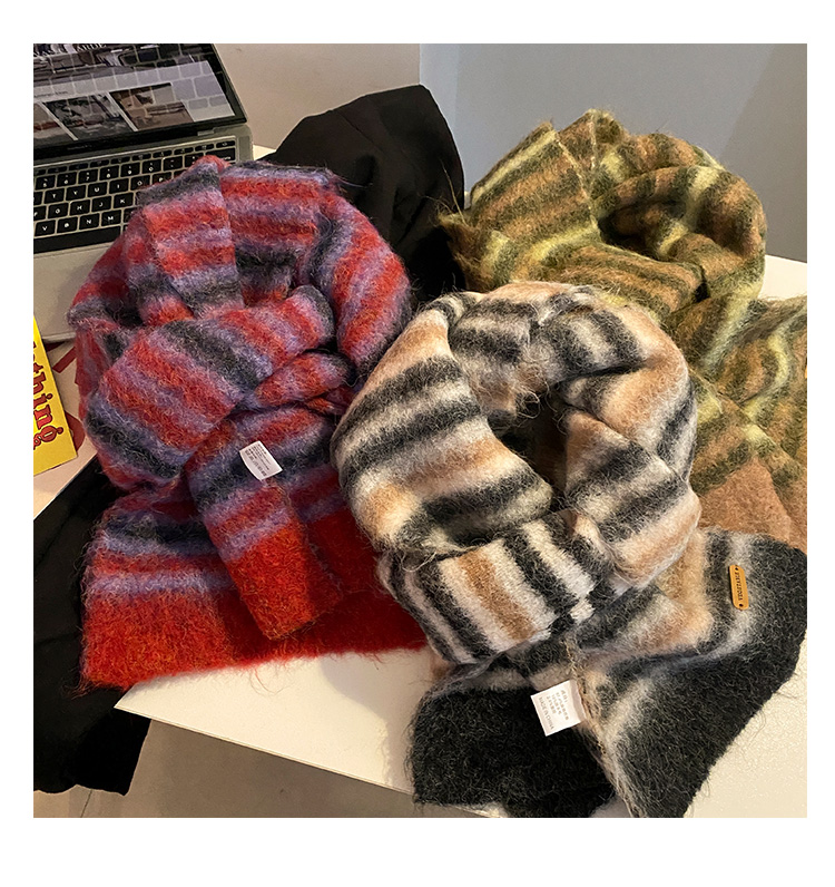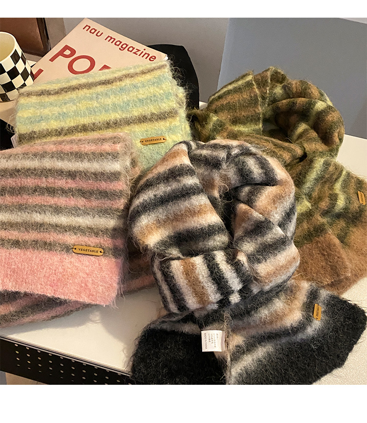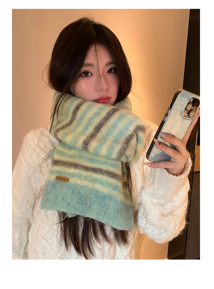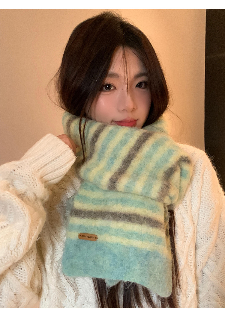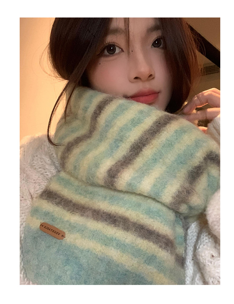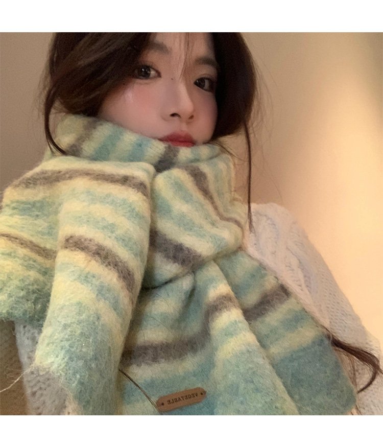 녹색 줄무늬 스카프 여성의 가을과 겨울 한국 스타일 분위기 따뜻한 따뜻한 목도리 2024 새로운 스타일