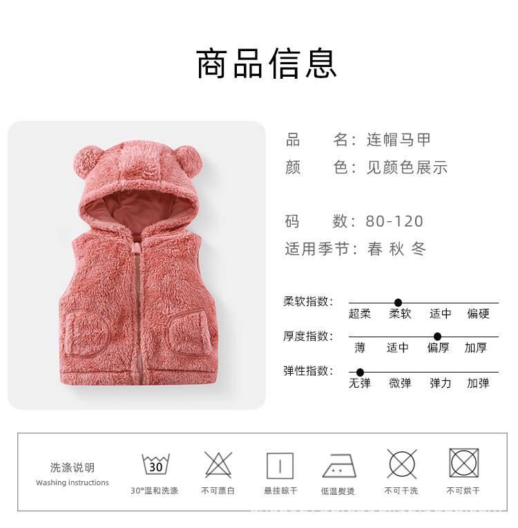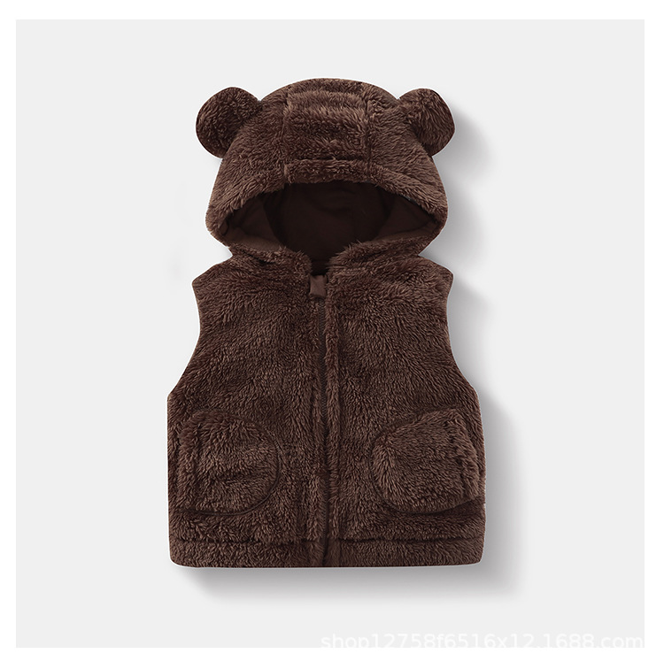 어린이 조끼 가을과 겨울 새로운 봉제 후드 지퍼 하프 베어 외부 착용 내복 민소매 재킷 홈 탑스토어 가기