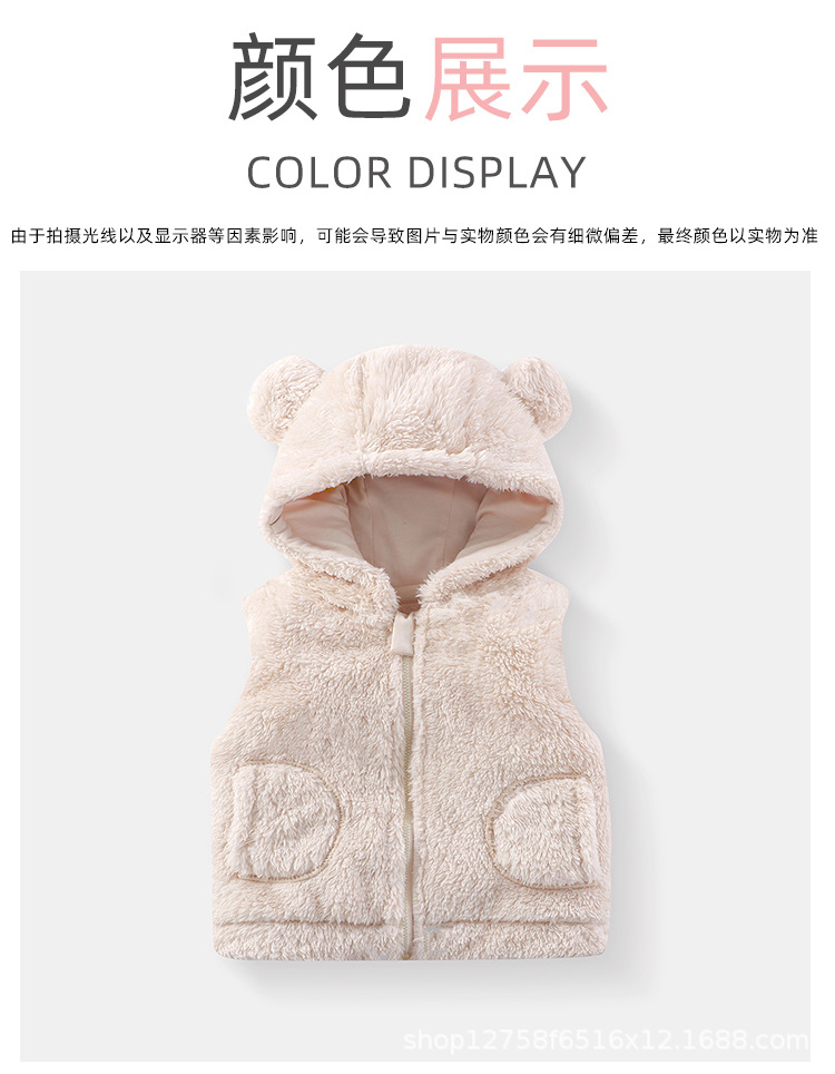 어린이 조끼 가을과 겨울 새로운 봉제 후드 지퍼 하프 베어 외부 착용 내복 민소매 재킷 홈 탑