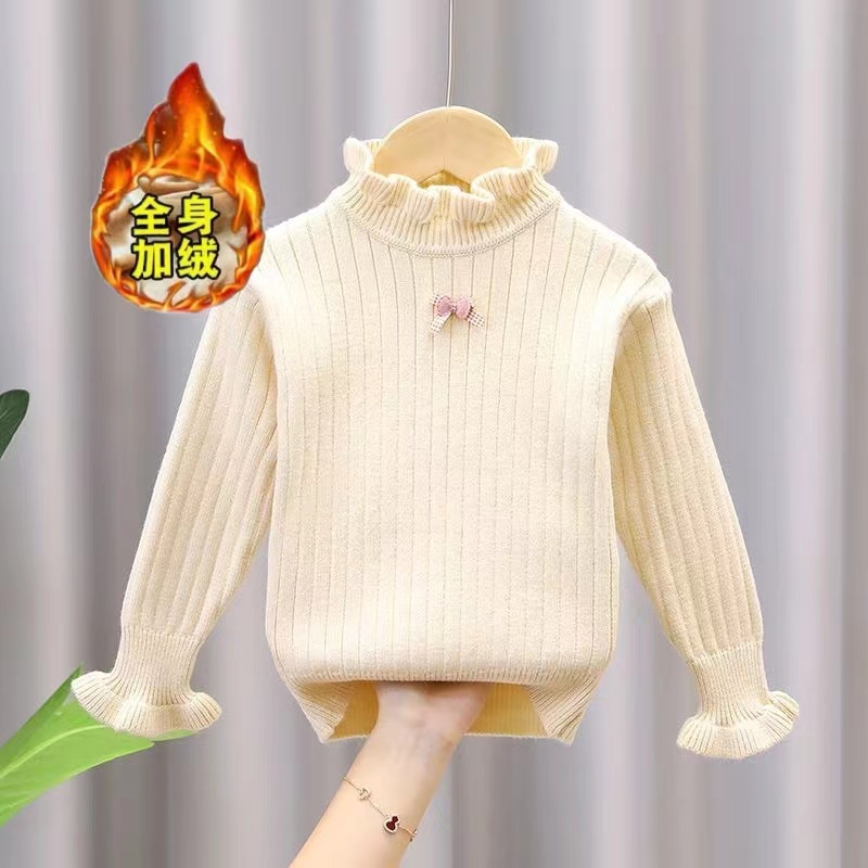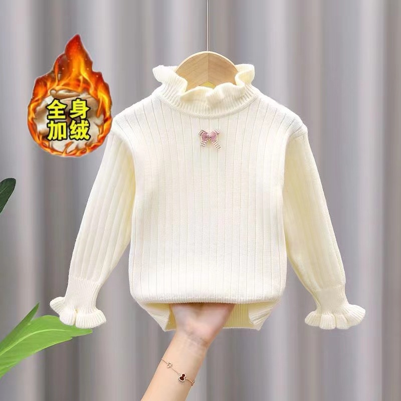 어린이 여성 스웨터 봄 가을 겨울 새로운 패션 아동복 레이스 따뜻한 소녀 스웨터 기본 셔츠 기모 두꺼운