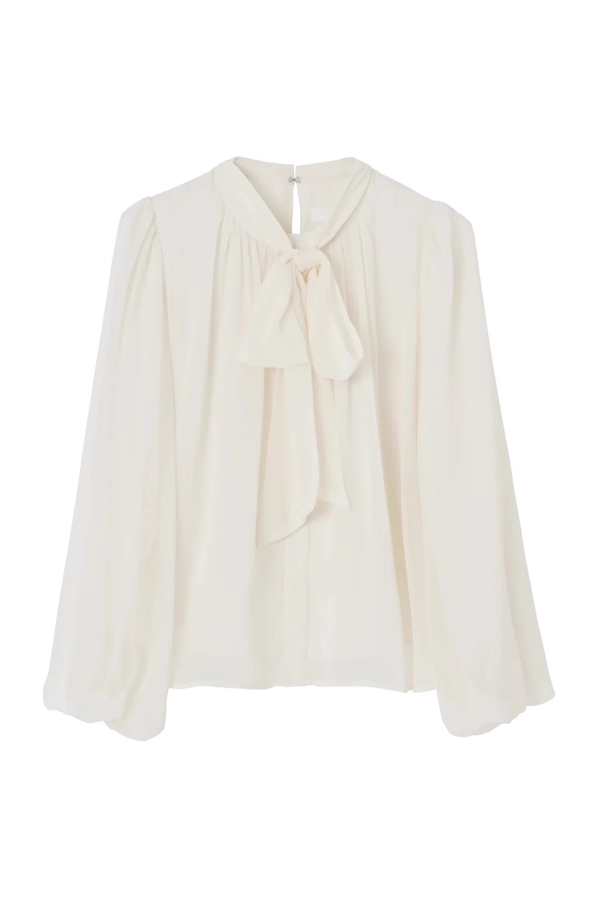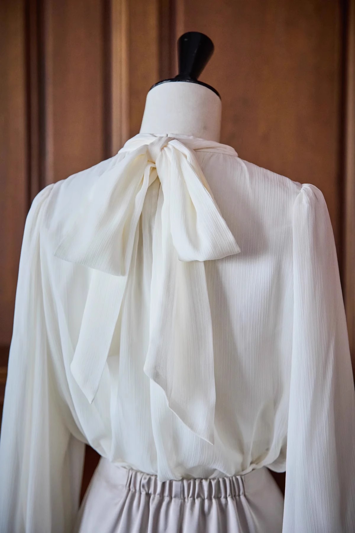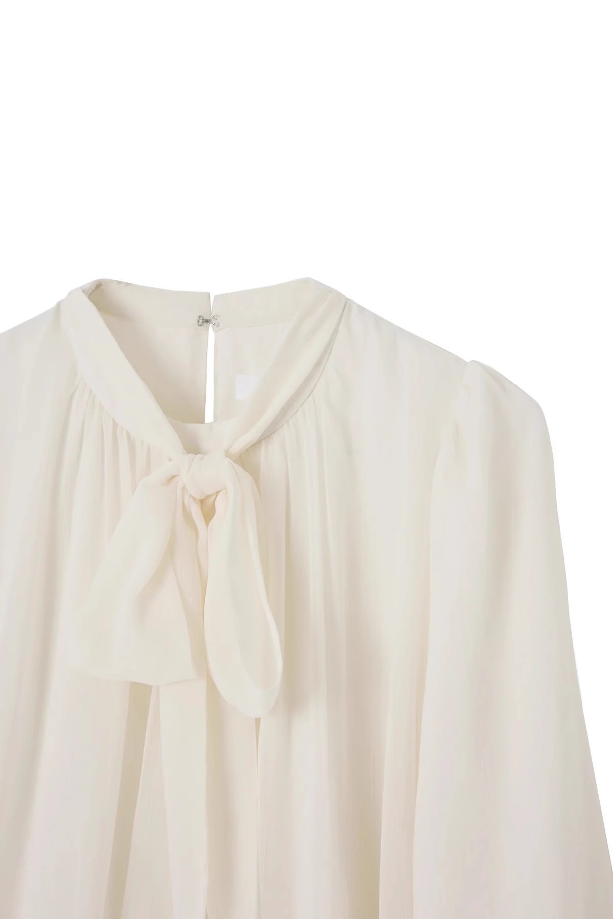 WZFS24075 가을과 겨울 황후 홈 보우 랜턴 슬리브 루즈 쉬폰 라이트 얇은 셔츠베이스 탑 크로스 국경