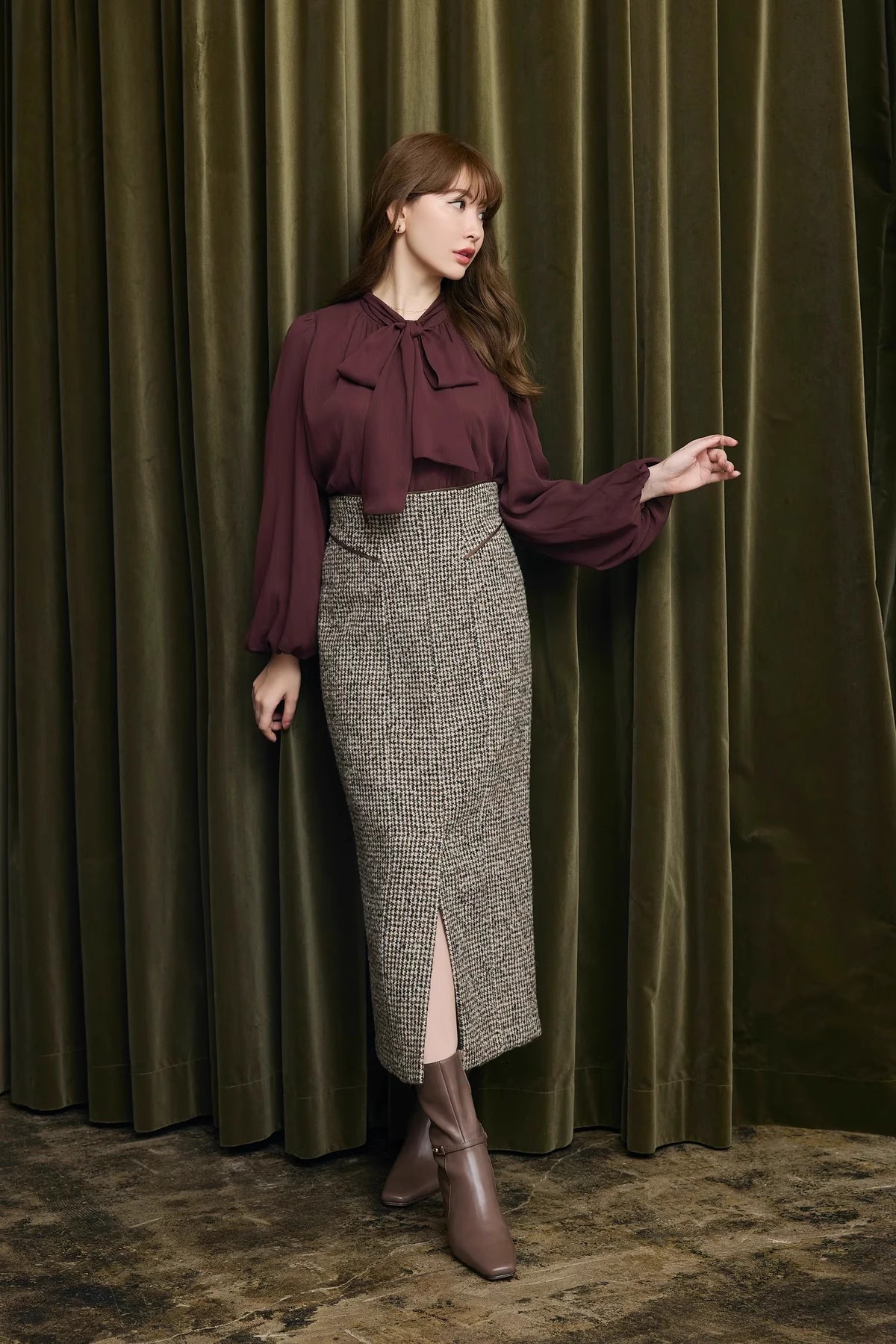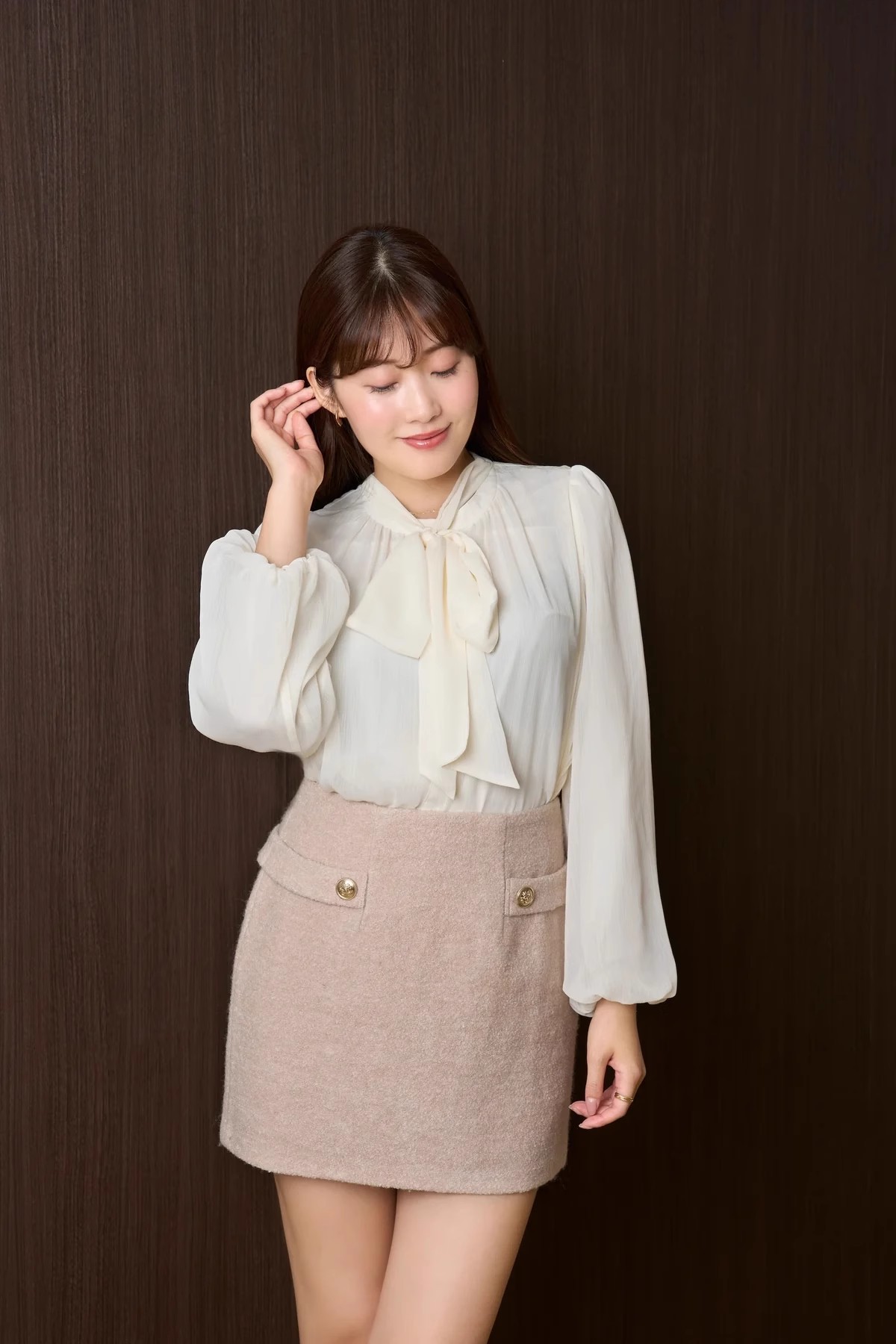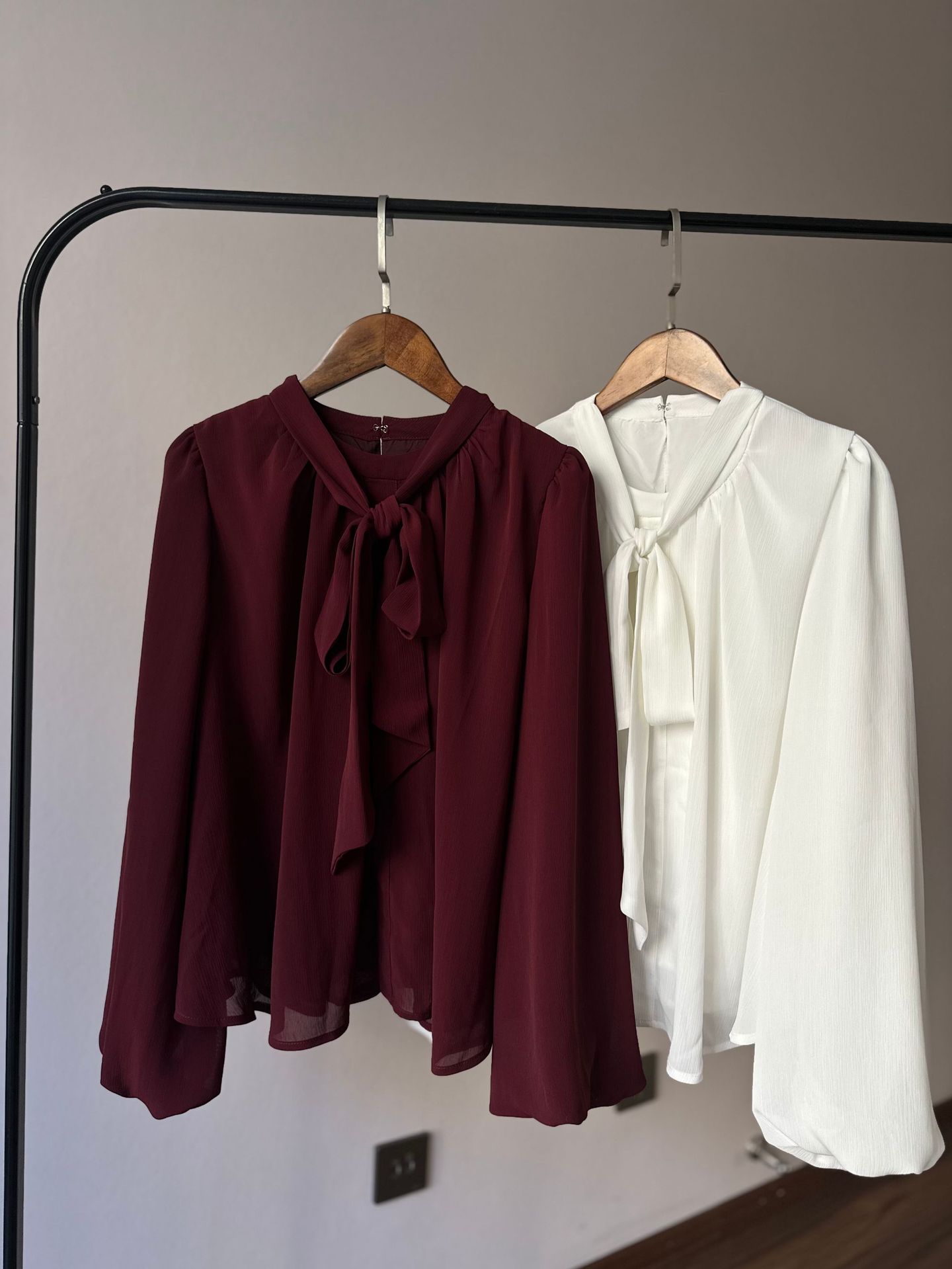 WZFS24075 가을과 겨울 황후 홈 보우 랜턴 슬리브 루즈 쉬폰 라이트 얇은 셔츠베이스 탑 크로스 국경스토어 가기