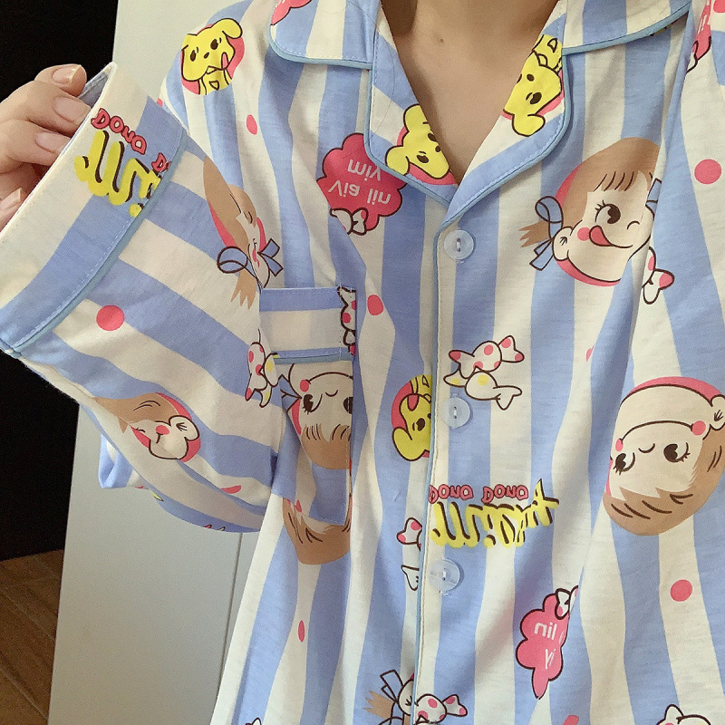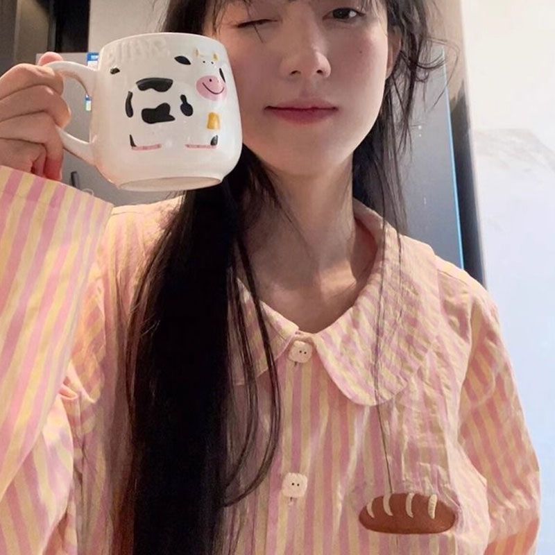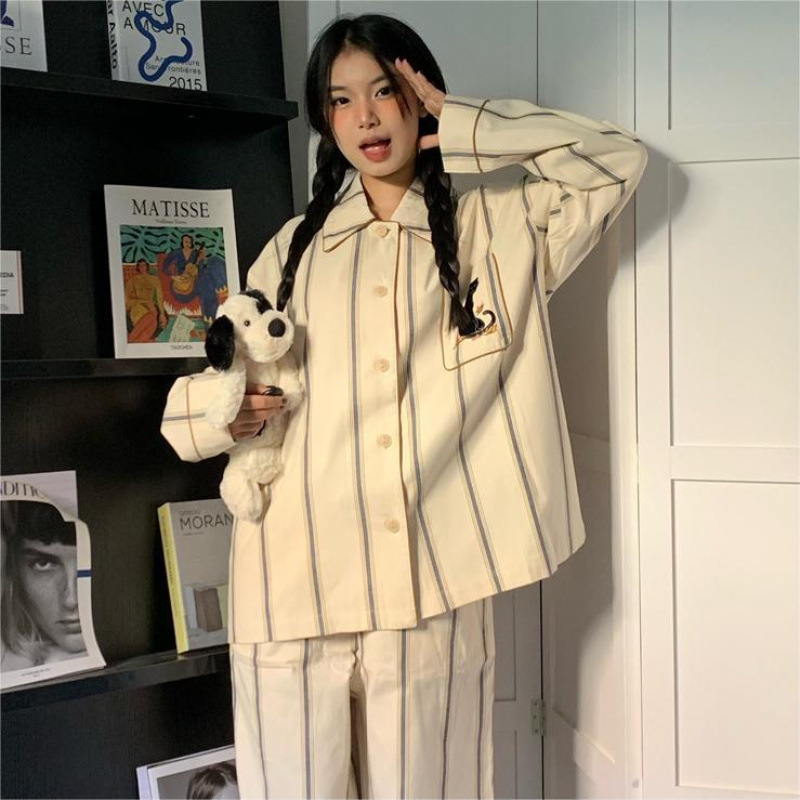 韩系高级感条纹情侣睡衣女春秋季新款长袖开衫休闲家居服套装外穿스토어 가기