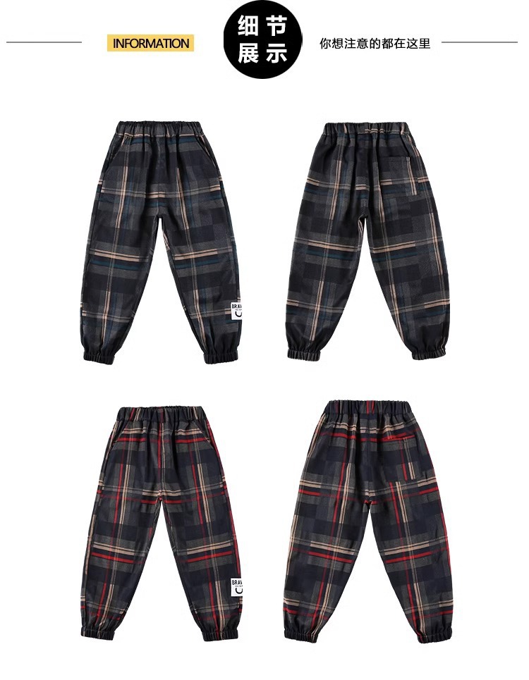 가을과 겨울 새로운 어린이 기모 따뜻한 외부 바지 바지 위장 격자 모양의 스포츠 캐주얼 바지 소년 소녀