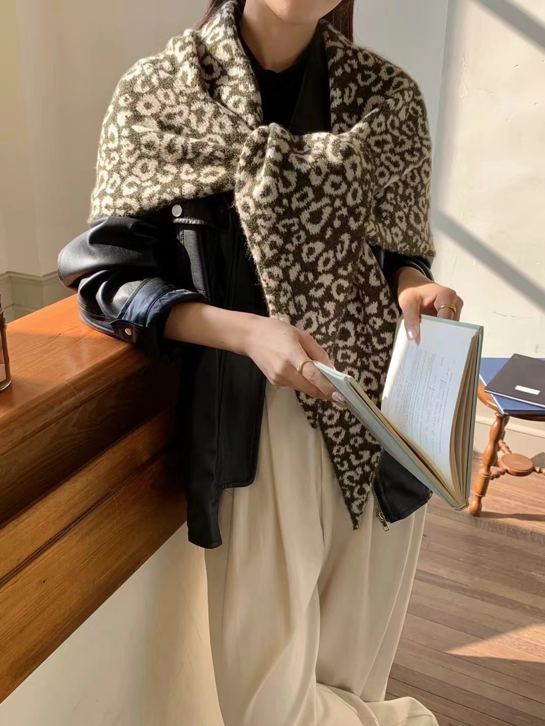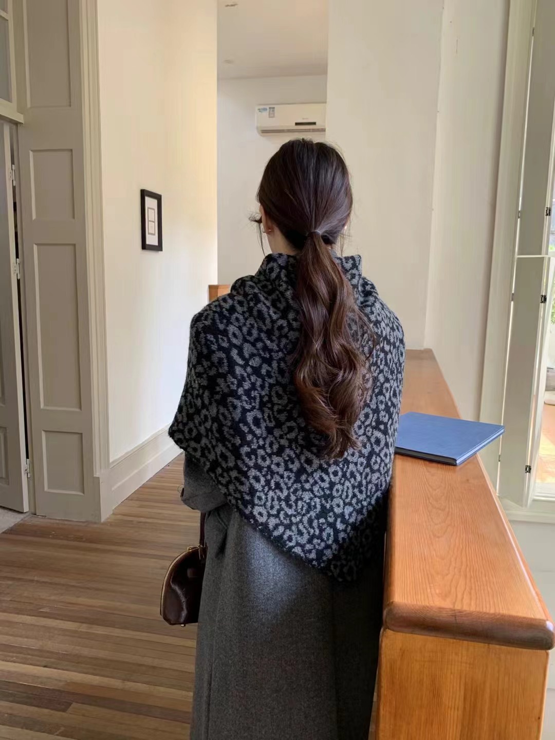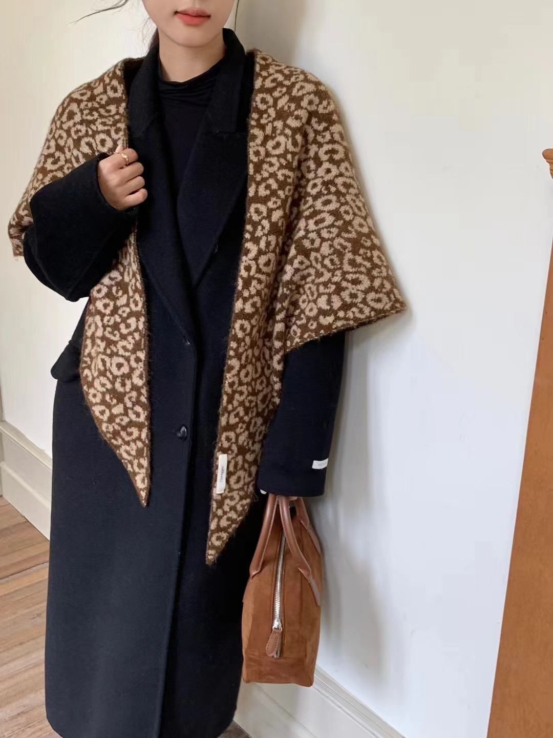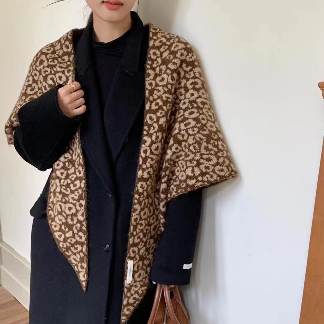 일본과 한국 동대문 유행소녀 표범 삼각 스카프 가을과 겨울 복고풍 게으른 바람 가득 따뜻한 스카프스토어 가기