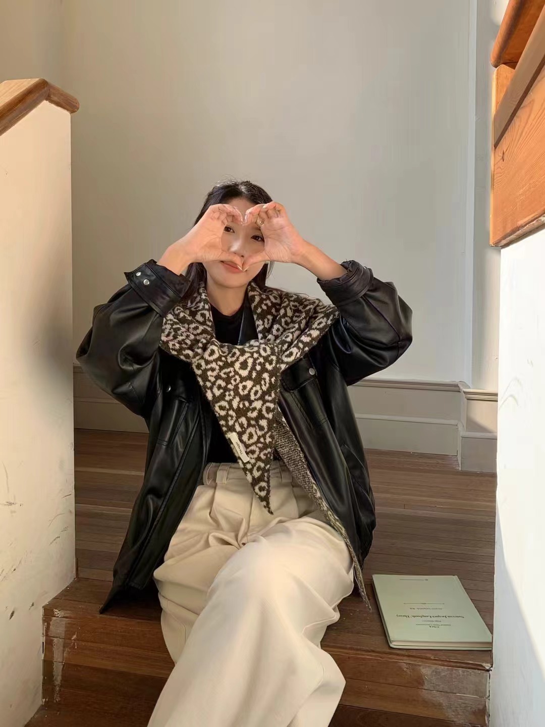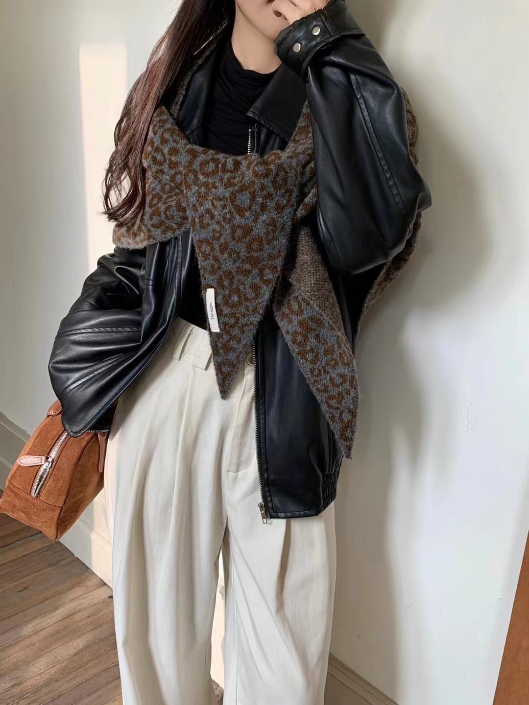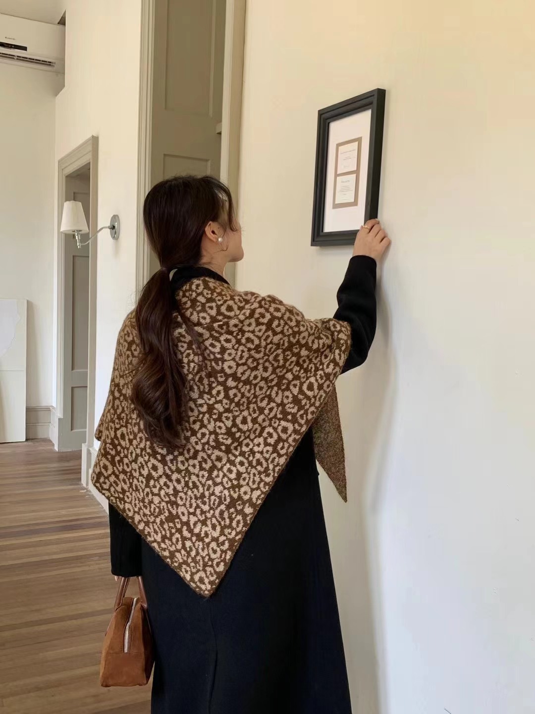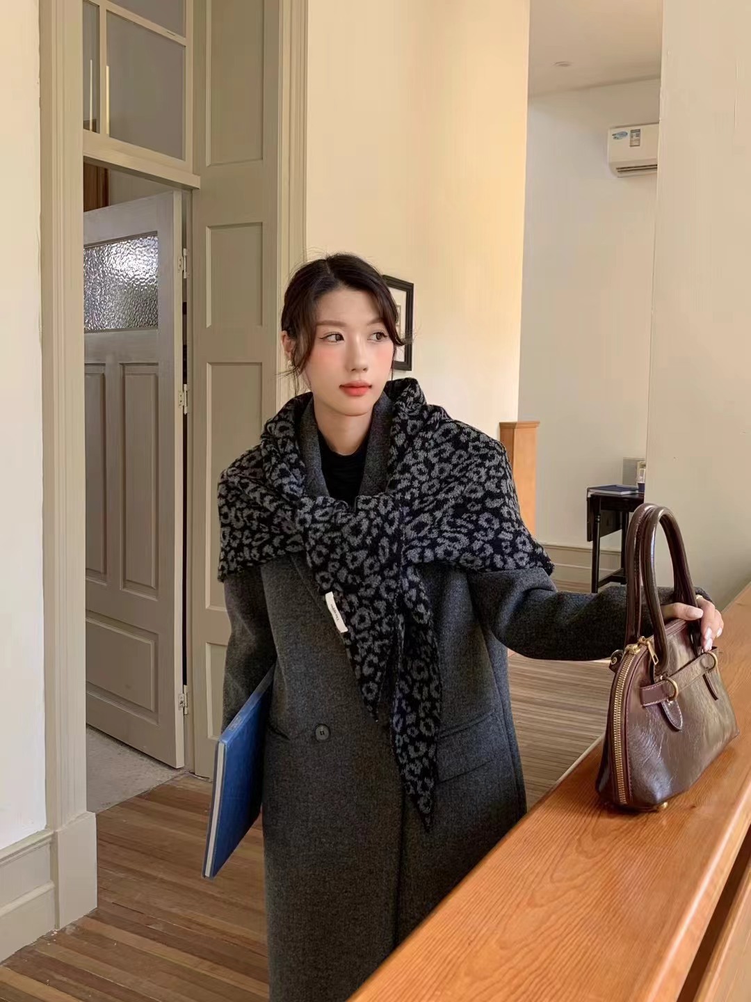 일본과 한국 동대문 유행소녀 표범 삼각 스카프 가을과 겨울 복고풍 게으른 바람 가득 따뜻한 스카프스토어 가기