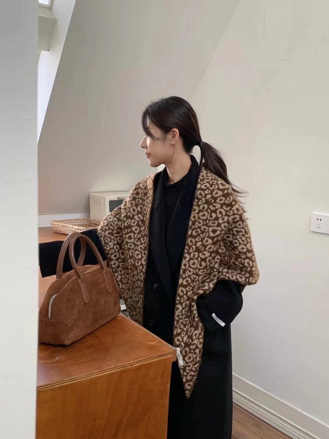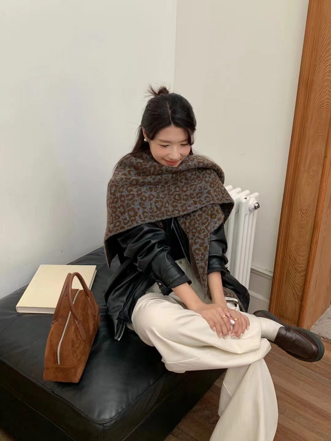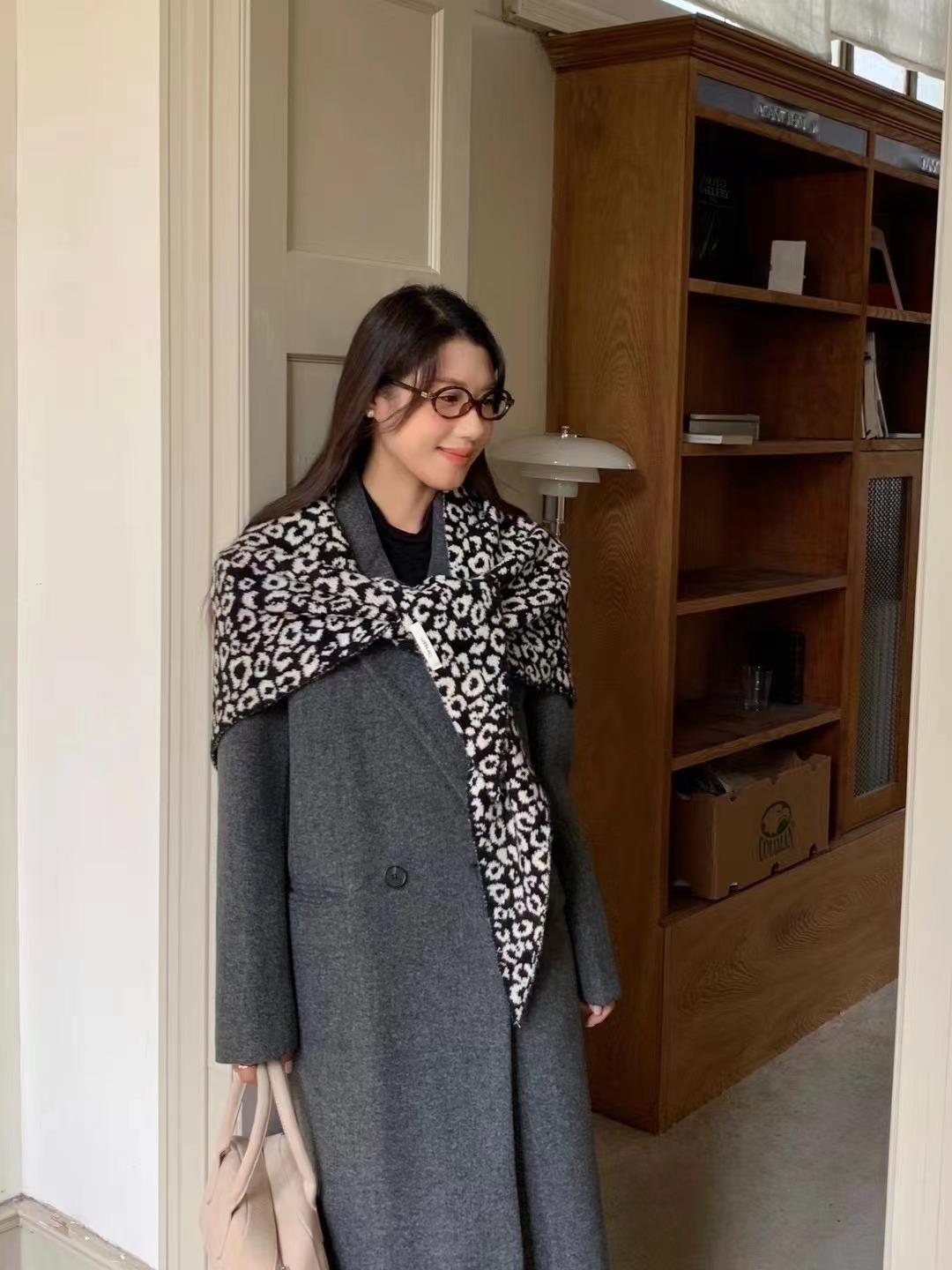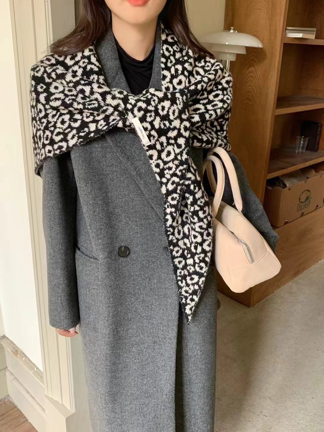 일본과 한국 동대문 유행소녀 표범 삼각 스카프 가을과 겨울 복고풍 게으른 바람 가득 따뜻한 스카프스토어 가기