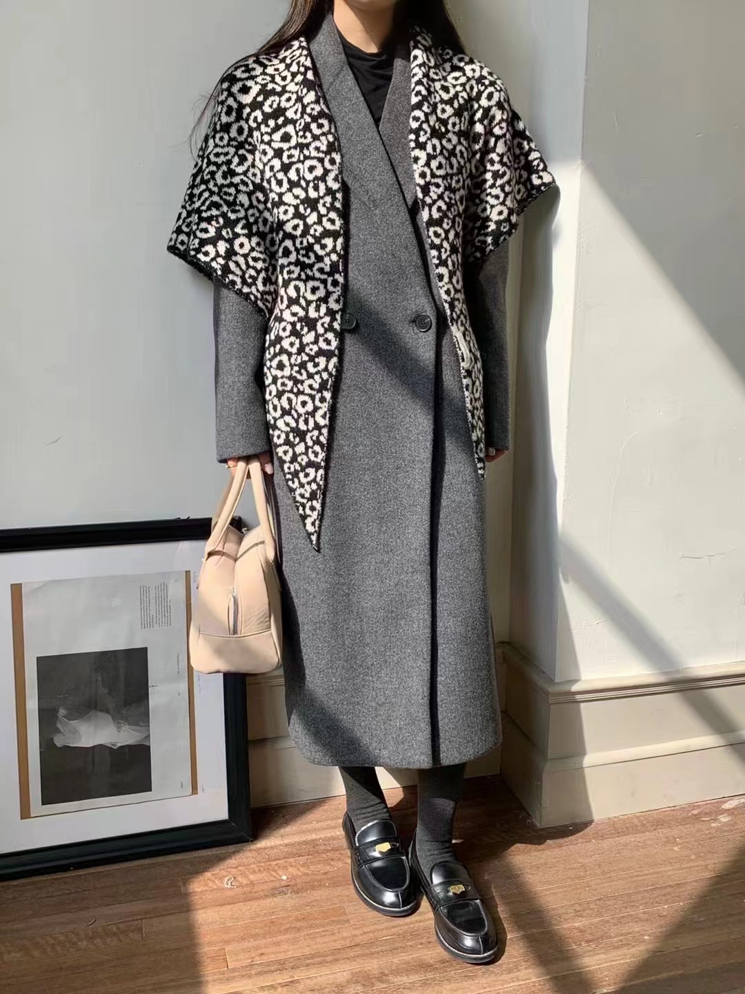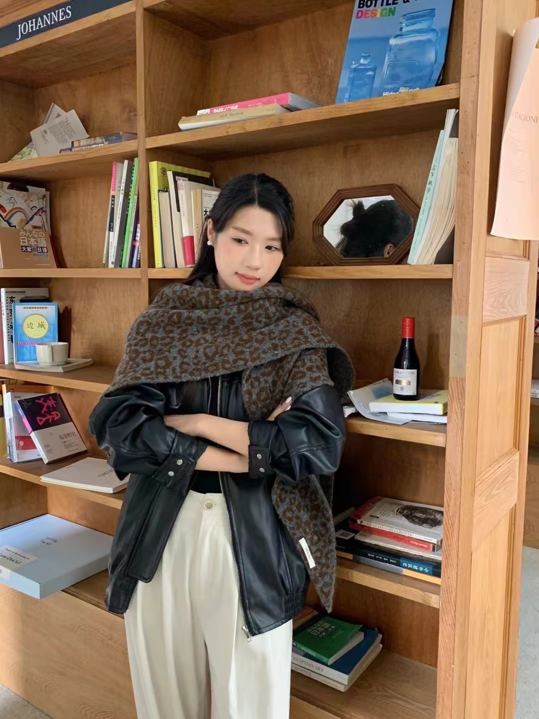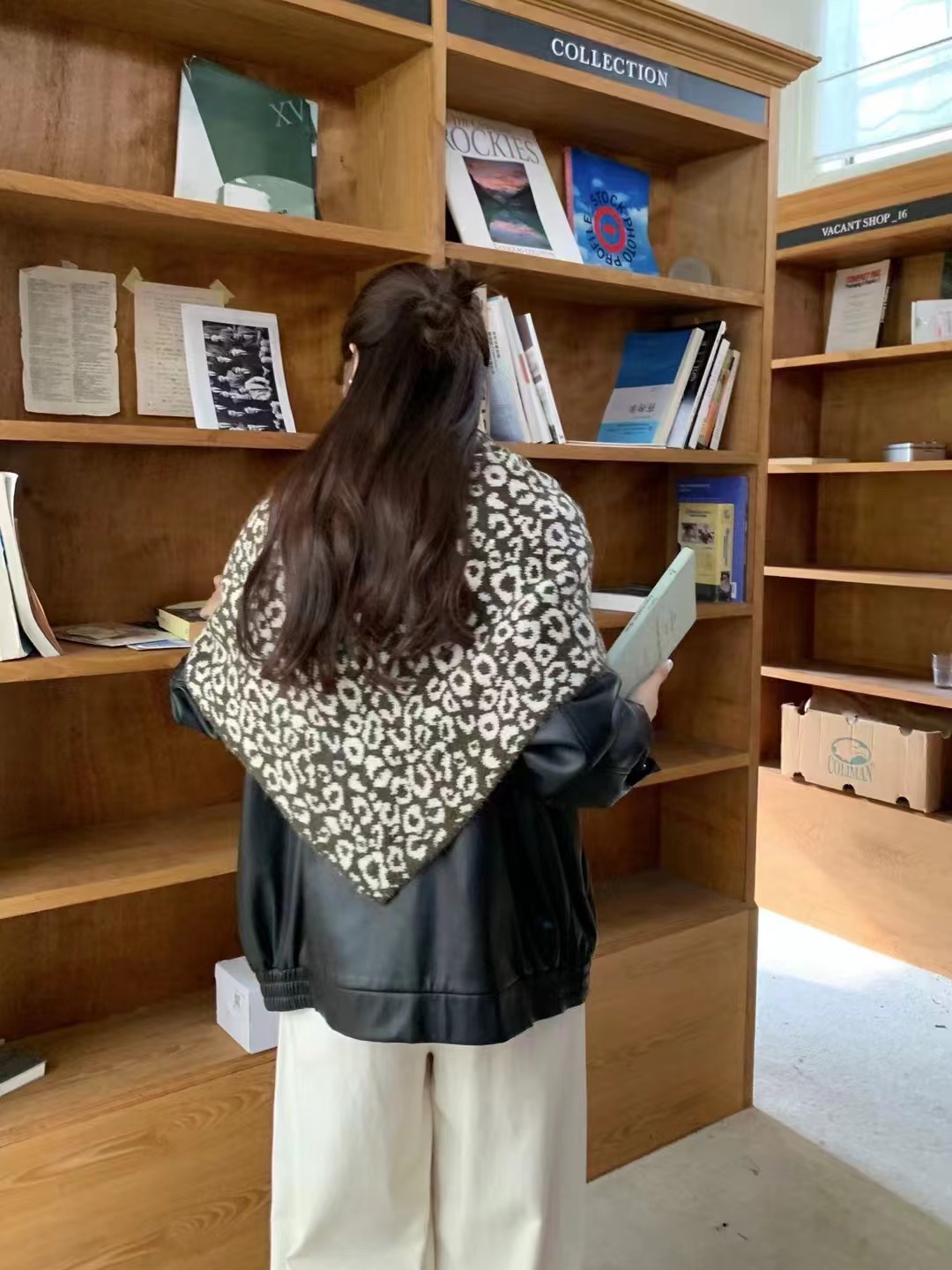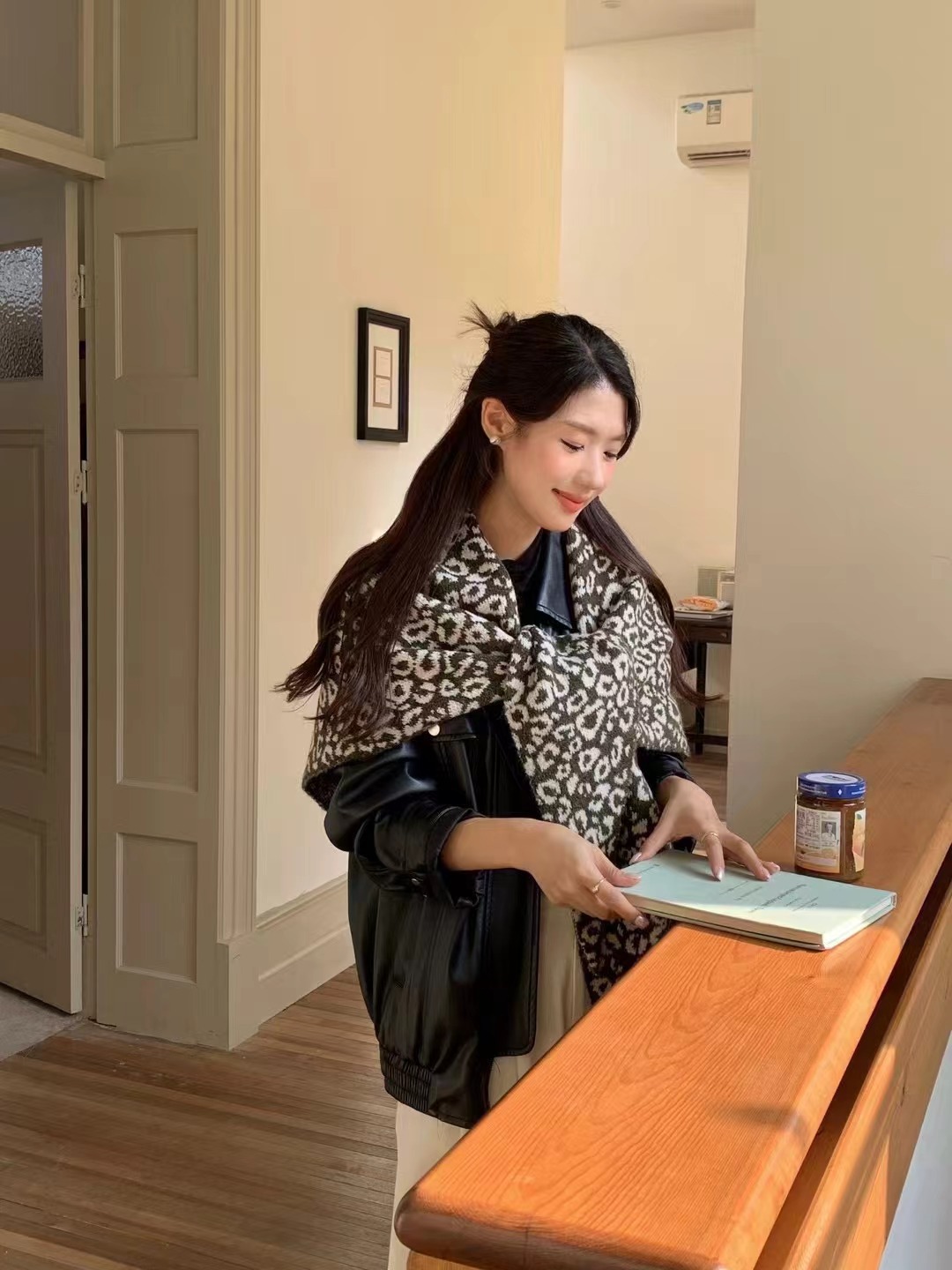 일본과 한국 동대문 유행소녀 표범 삼각 스카프 가을과 겨울 복고풍 게으른 바람 가득 따뜻한 스카프스토어 가기
