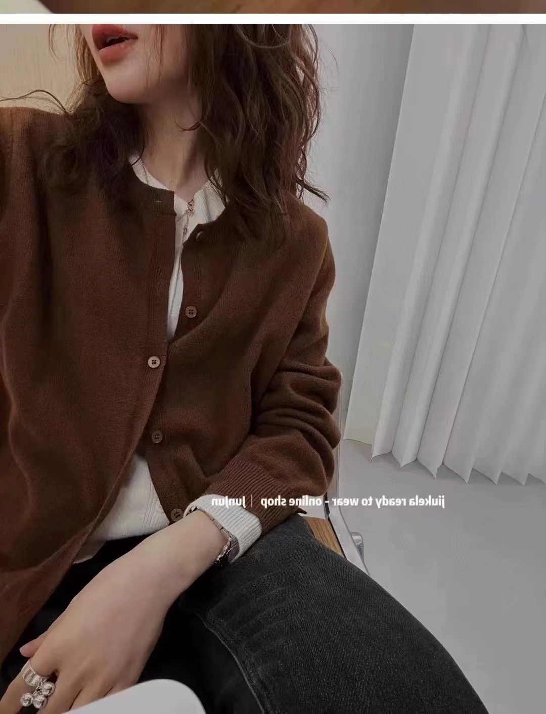 100 메리노 울 카디건 여성 가을과 겨울 그레이 가짜 투피스 니트웨어 고급 올드 머니 윈드 스웨터 코트