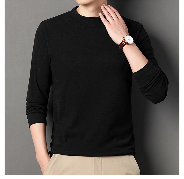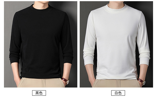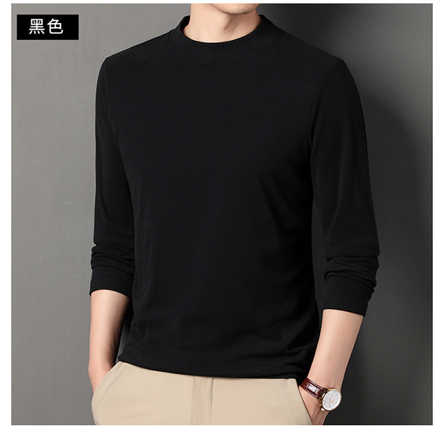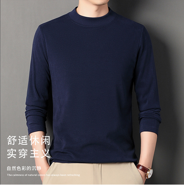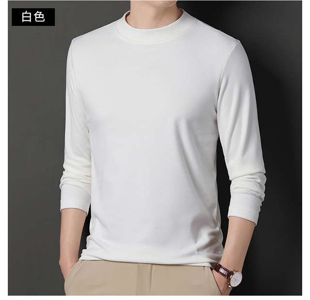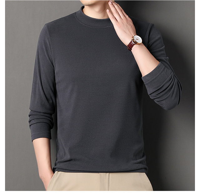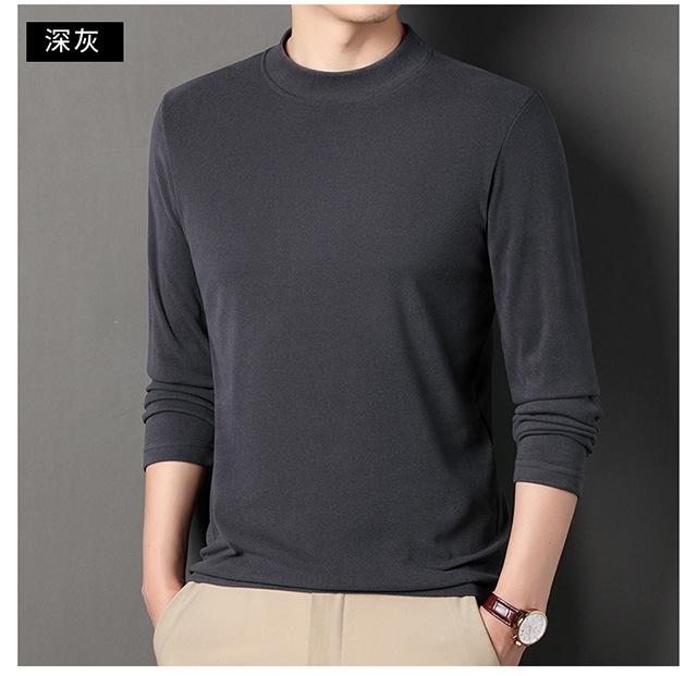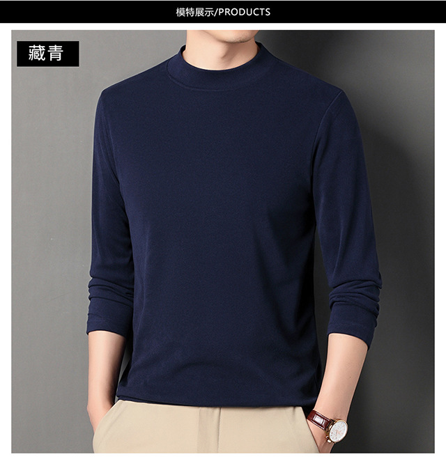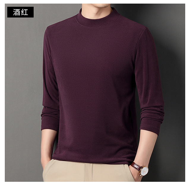 2024 새로운 중년 긴팔 티셔츠 남성용 솔리드 컬러 고급 벨벳 세미 하이 칼라 스웨트 셔츠 남성용 가을 남성용 티셔츠