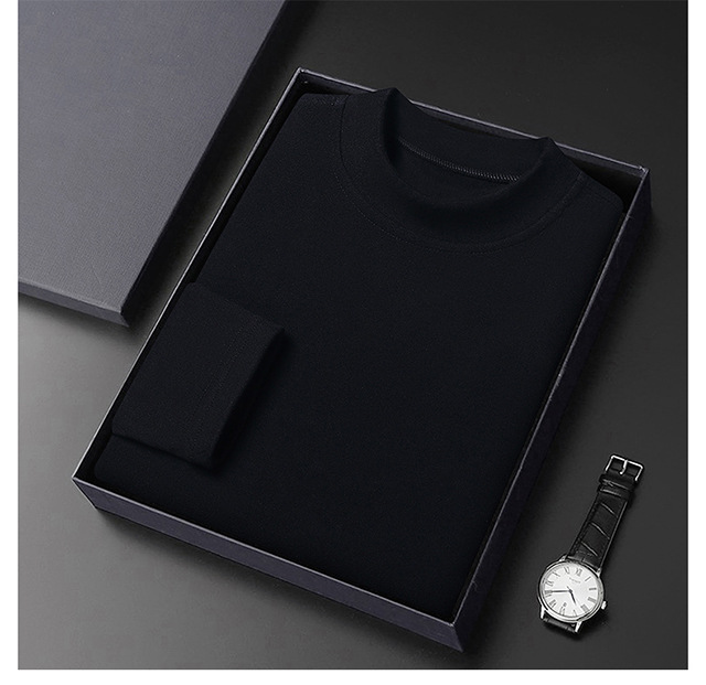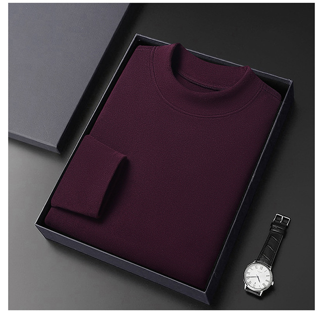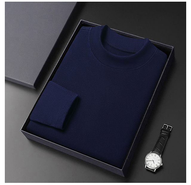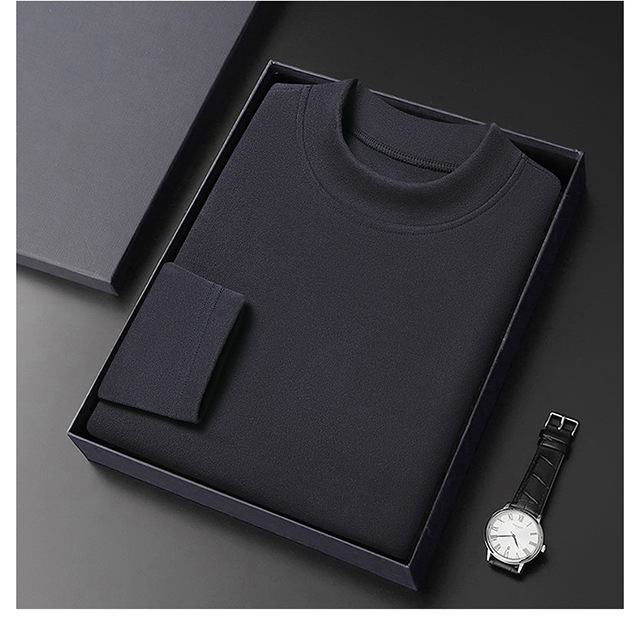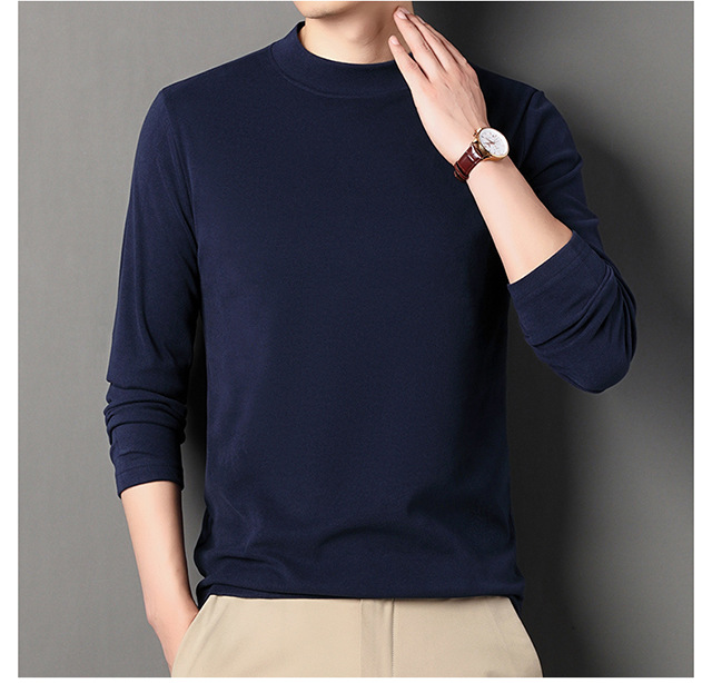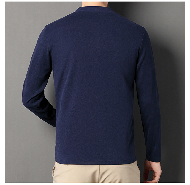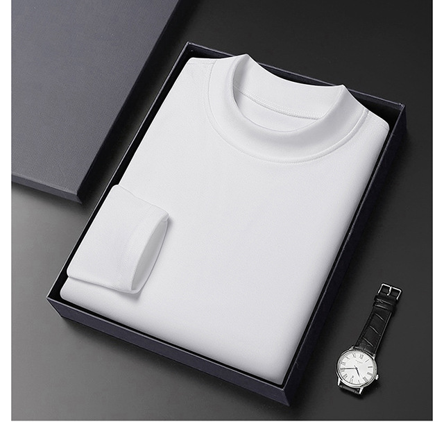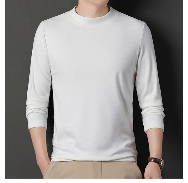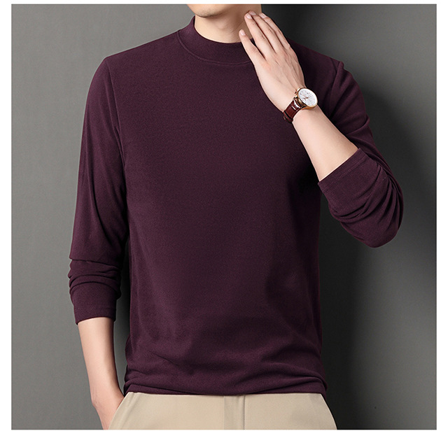 2024 새로운 중년 긴팔 티셔츠 남성용 솔리드 컬러 고급 벨벳 세미 하이 칼라 스웨트 셔츠 남성용 가을 남성용 티셔츠