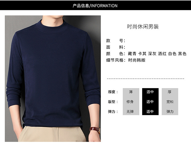 2024 새로운 중년 긴팔 티셔츠 남성용 솔리드 컬러 고급 벨벳 세미 하이 칼라 스웨트 셔츠 남성용 가을 남성용 티셔츠스토어 가기
