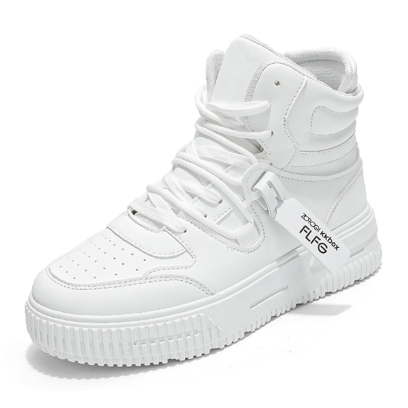 가을과 겨울 하이 탑 스케이트 보드 신발 남녀 캐주얼 올 매치 가죽 화이트 신발 두꺼운 밑창 학생 라이브 스포츠 애호가 신발