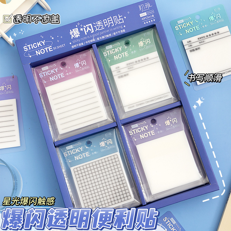 투명한 포스트잇 노트 플래시 포스트잇 용지 잘못된 포스트잇 스티커 학생 쓰기 전체 접착 인덱스 라벨 스티커스토어 가기