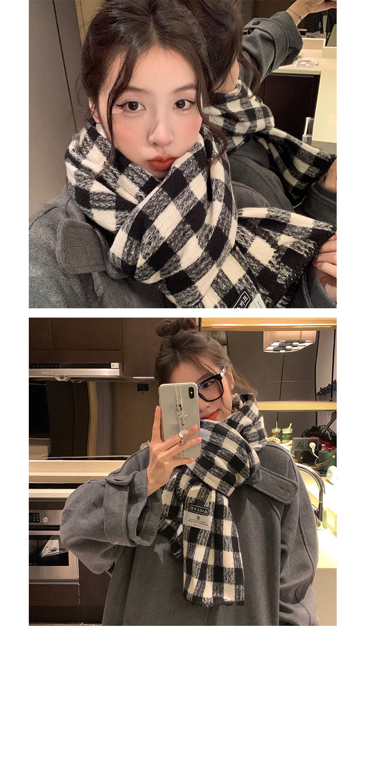 녹색 격자 무늬 스카프 여자 겨울 2024 새로운 한국식 올매치 하이 엔드 두꺼운 따뜻한 니트 스카프스토어 가기