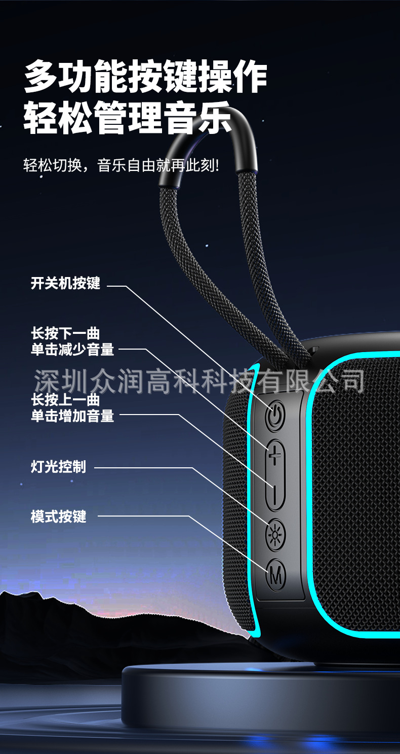 새로운 2024 무선 블루투스 스피커 서브 우퍼 편리한 멀티 운동 에너지 야외 승마 배낭 교수형 스피커