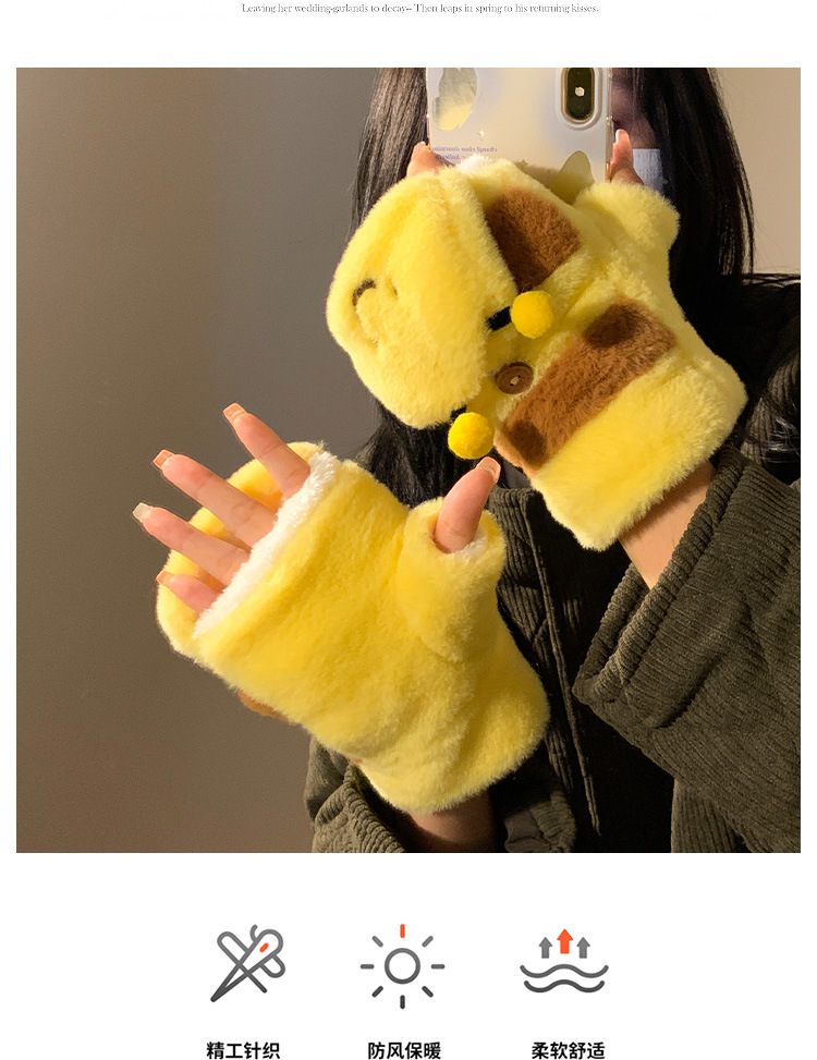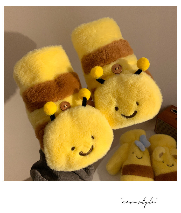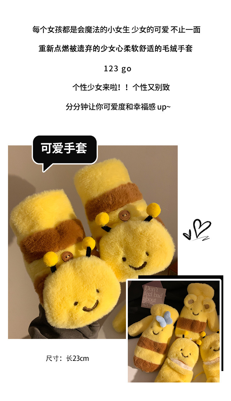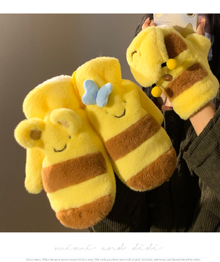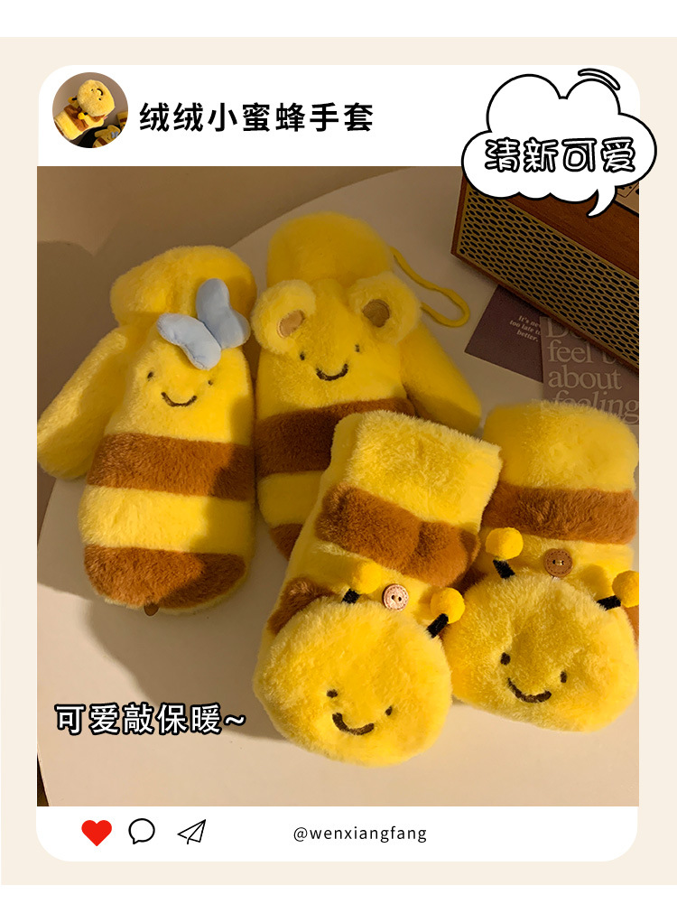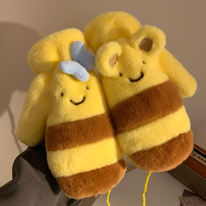 여성을위한 귀여운 허니 베어 보우 노란색 플러시 장갑 가을, 겨울 2024 따뜻하고 다재다능한 방풍 사이클링 트렌드스토어 가기