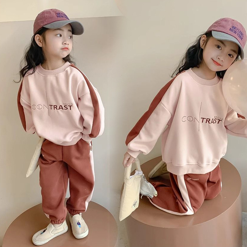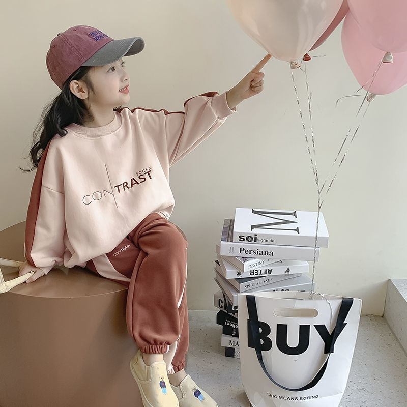 소녀 세트 봄과 가을 2024 새로운 스타일 유행 어린 소녀 이른 가을 캐주얼 스웨트 셔츠 어린이 가을 착용스토어 가기