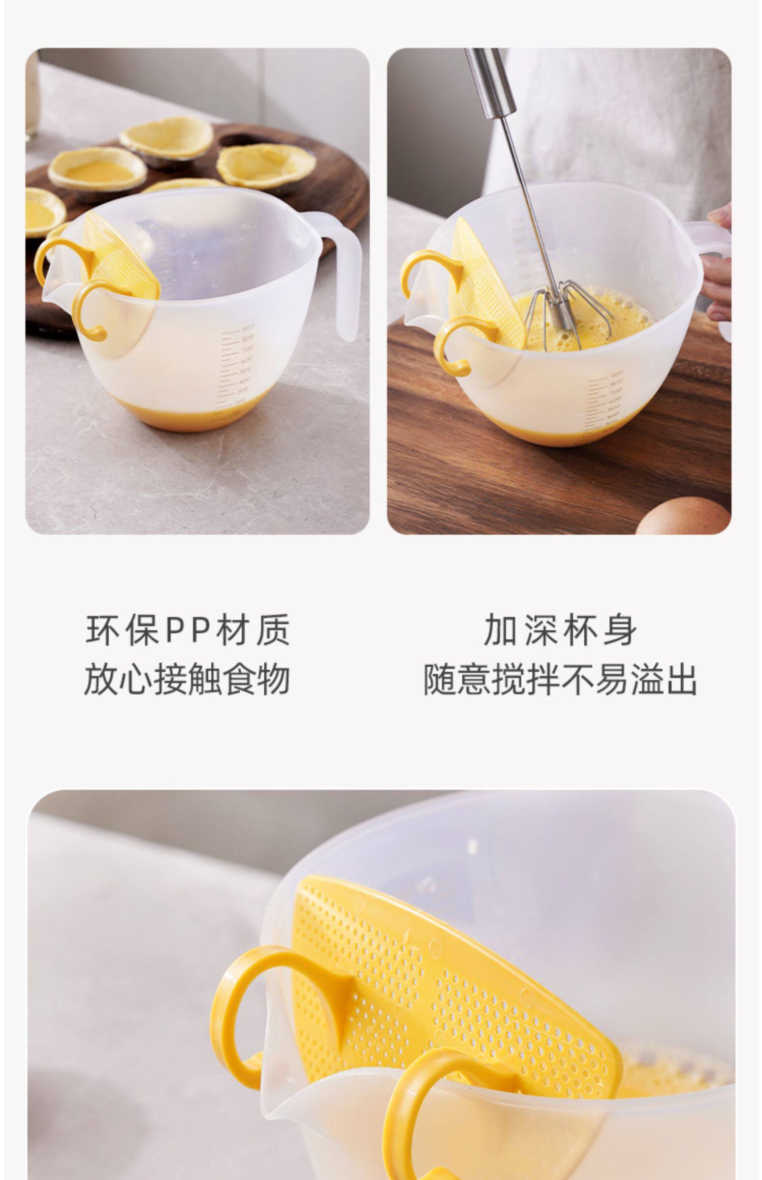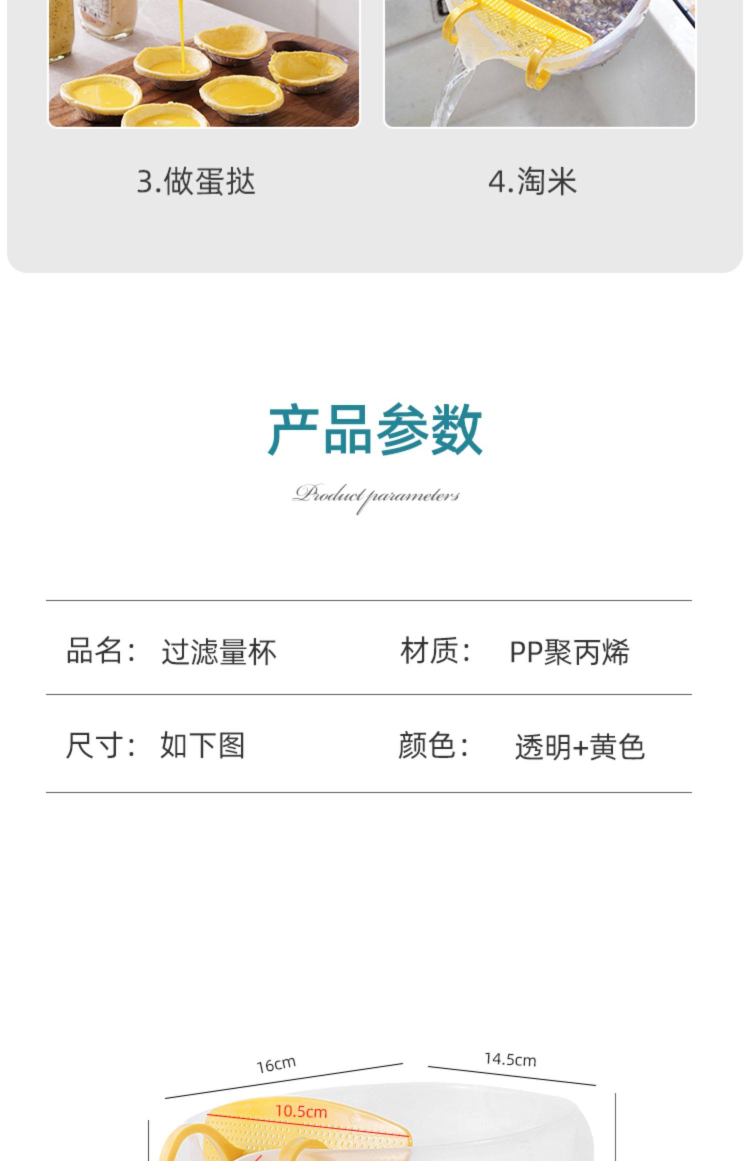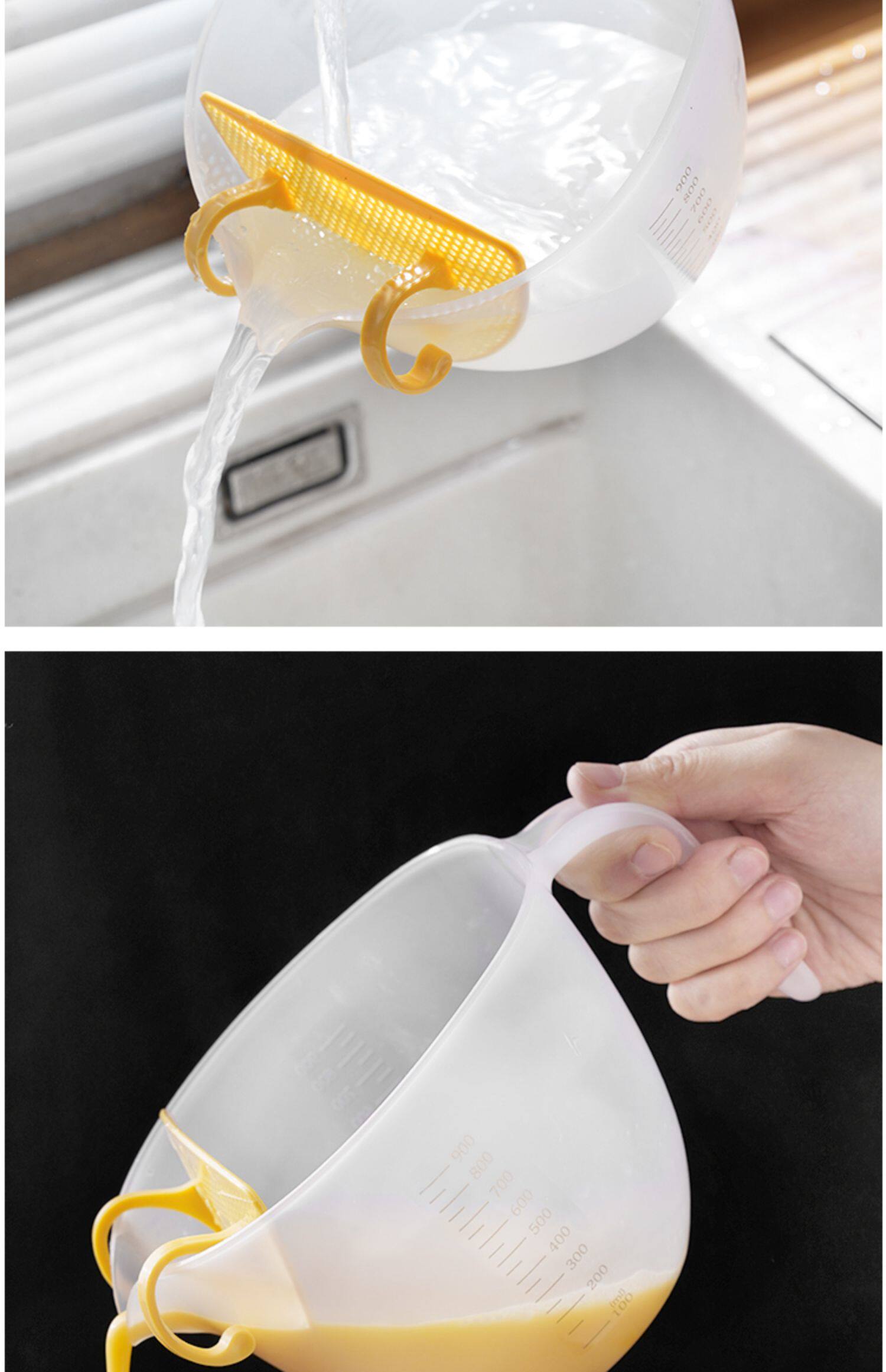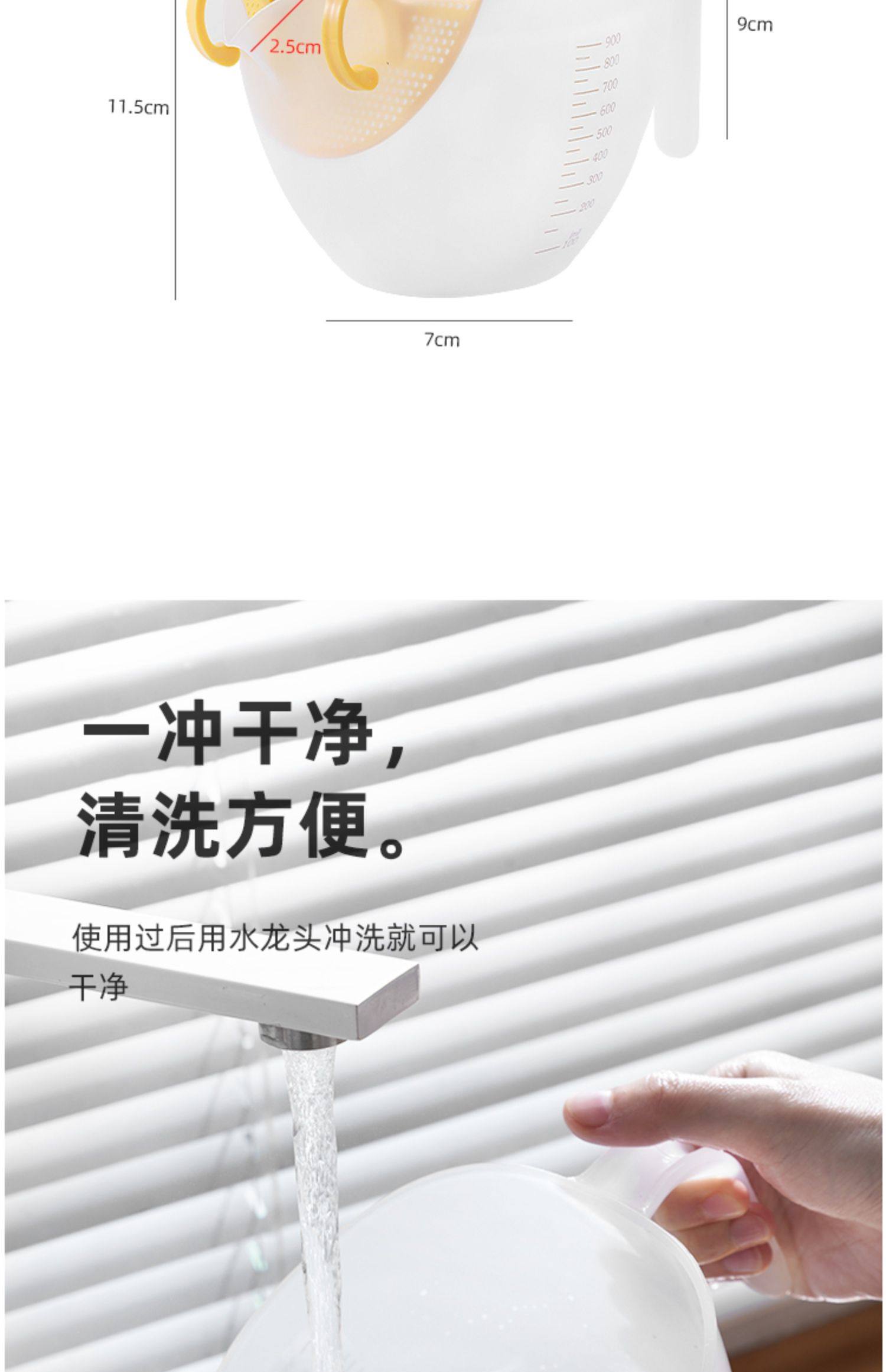 계란을이기는 계란 액체 필터 1000ml 부엌 플라스틱 쌀 세척 장치 저울로 컵 식품 등급을 측정하는 필터스토어 가기
