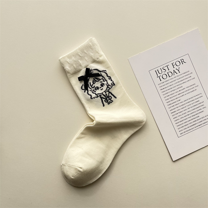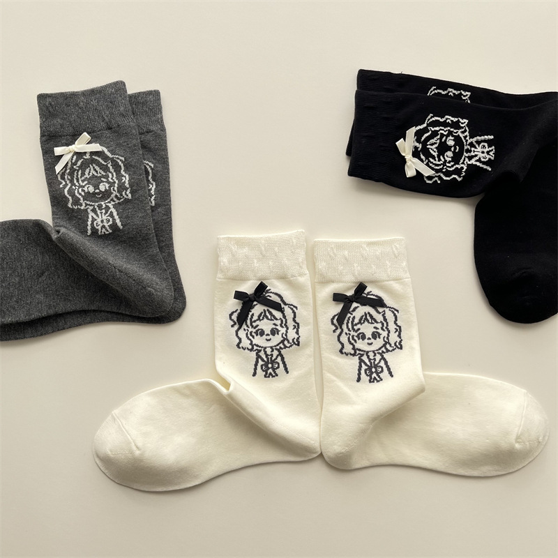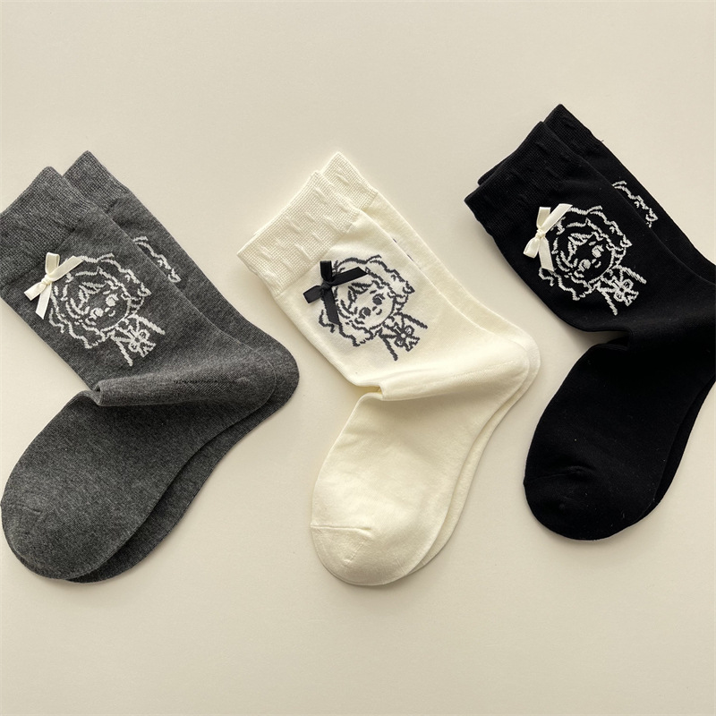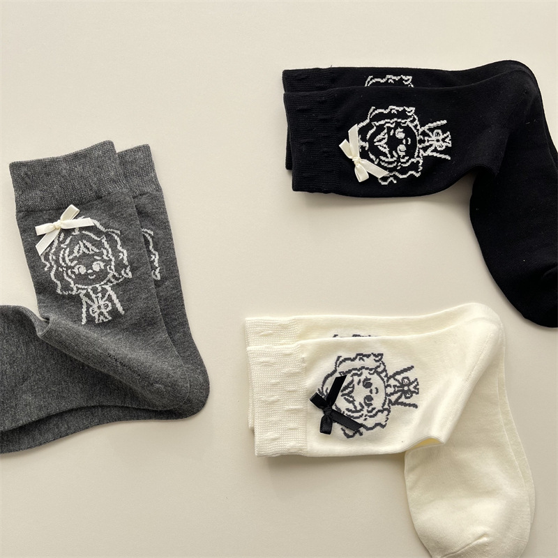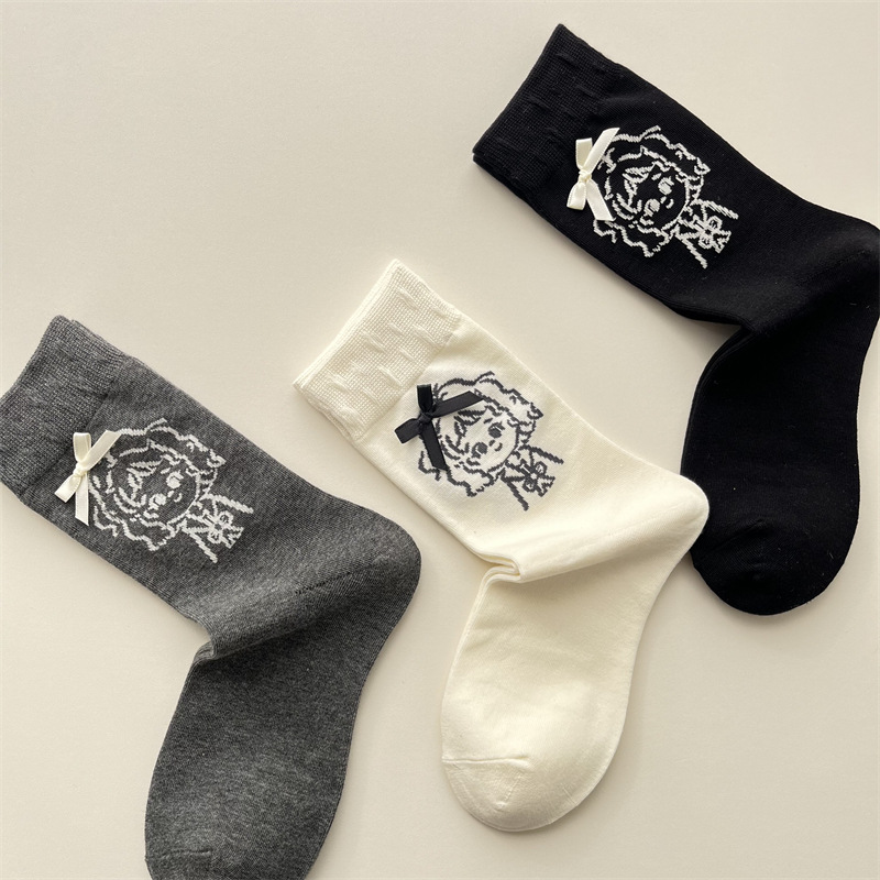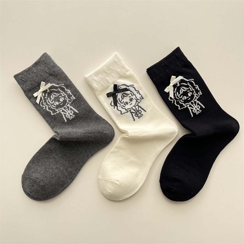 가을 겨울 귀여운 소녀 나비 매듭 양말 한국 패션 만화 캐릭터 더미 양말 간단한 다재다능한면 양말스토어 가기
