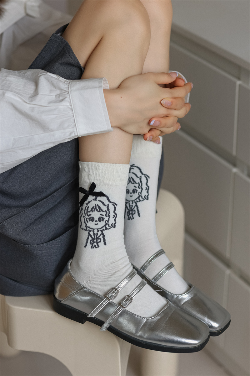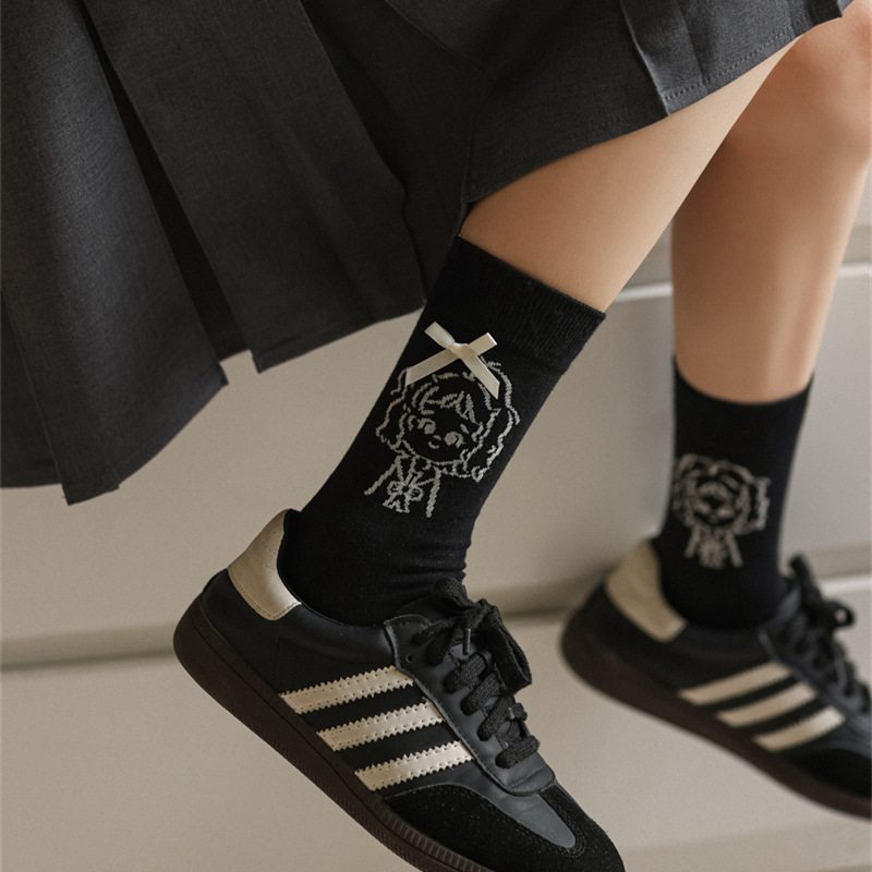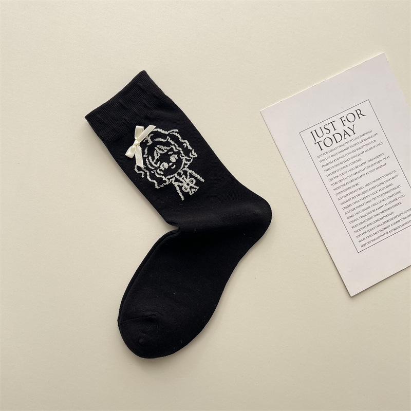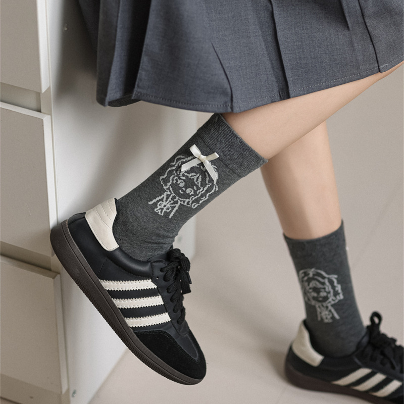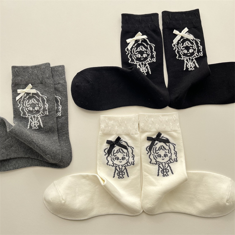 가을 겨울 귀여운 소녀 나비 매듭 양말 한국 패션 만화 캐릭터 더미 양말 간단한 다재다능한면 양말스토어 가기