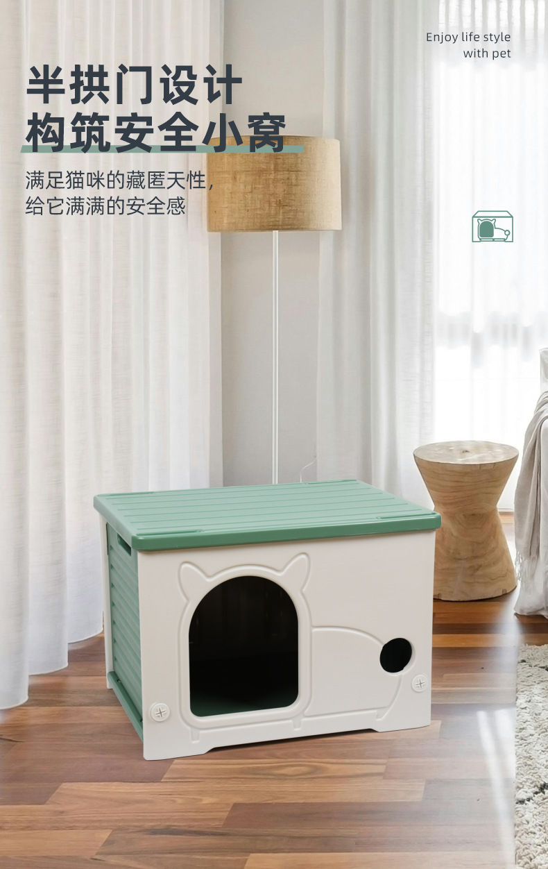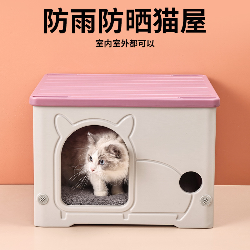 야외 고양이 둥지 사계절 일반 방비 선 스크린 작은 실내 반 밀폐 고양이 빌라 플라스틱 스트레이 고양이와 개 집