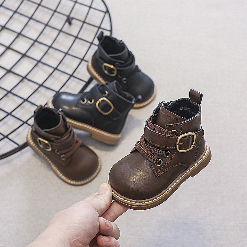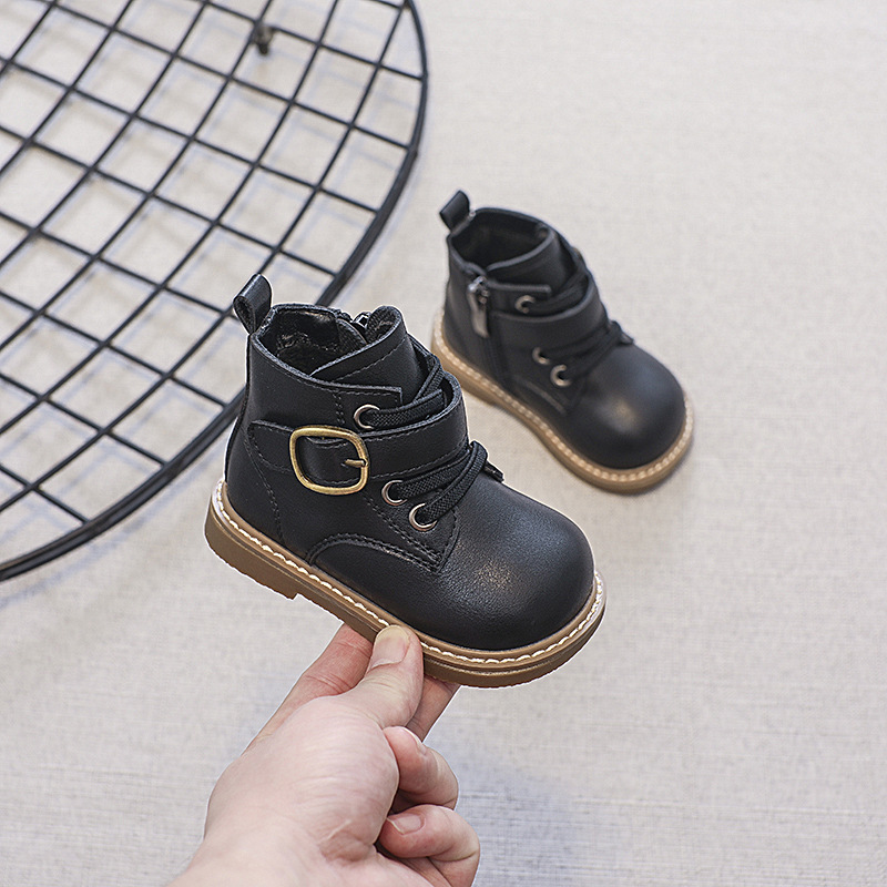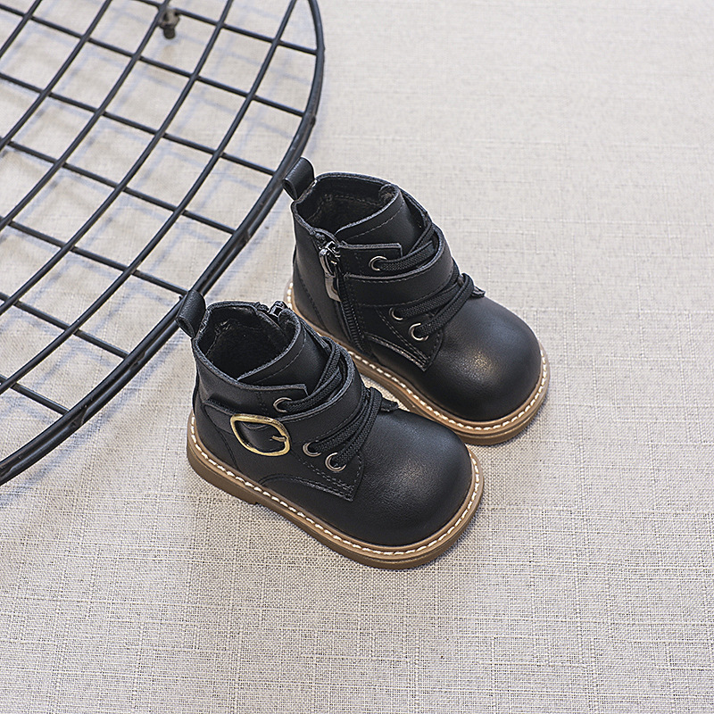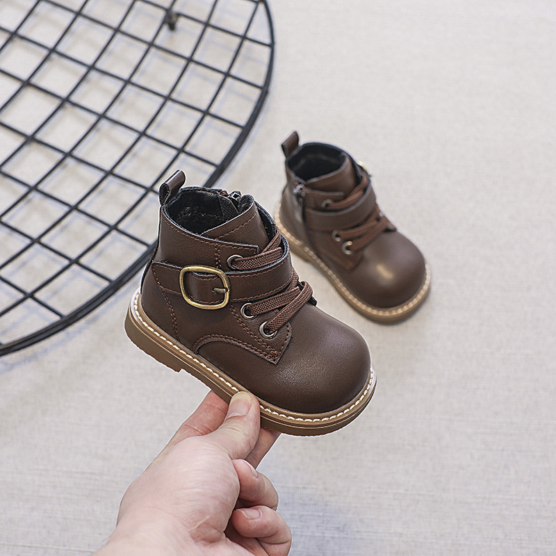 겨울 아기 마틴 부츠 레트로 영국 스타일 여성 부츠 기모 따뜻한 소년의 금속 사이드 지퍼 가죽 부츠스토어 가기