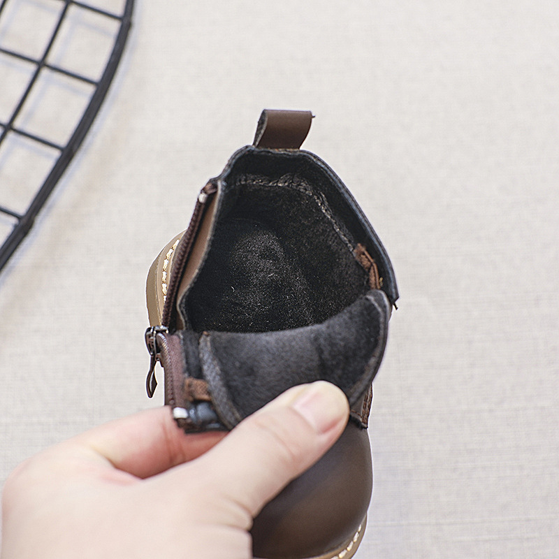 겨울 아기 마틴 부츠 레트로 영국 스타일 여성 부츠 기모 따뜻한 소년의 금속 사이드 지퍼 가죽 부츠