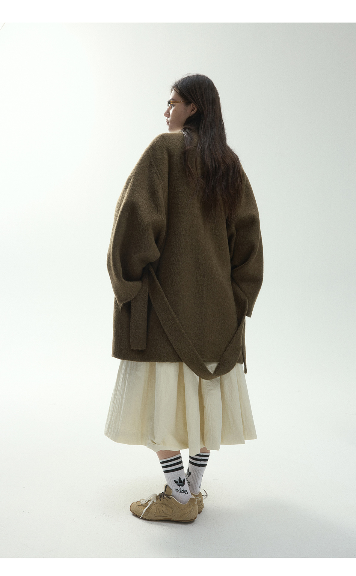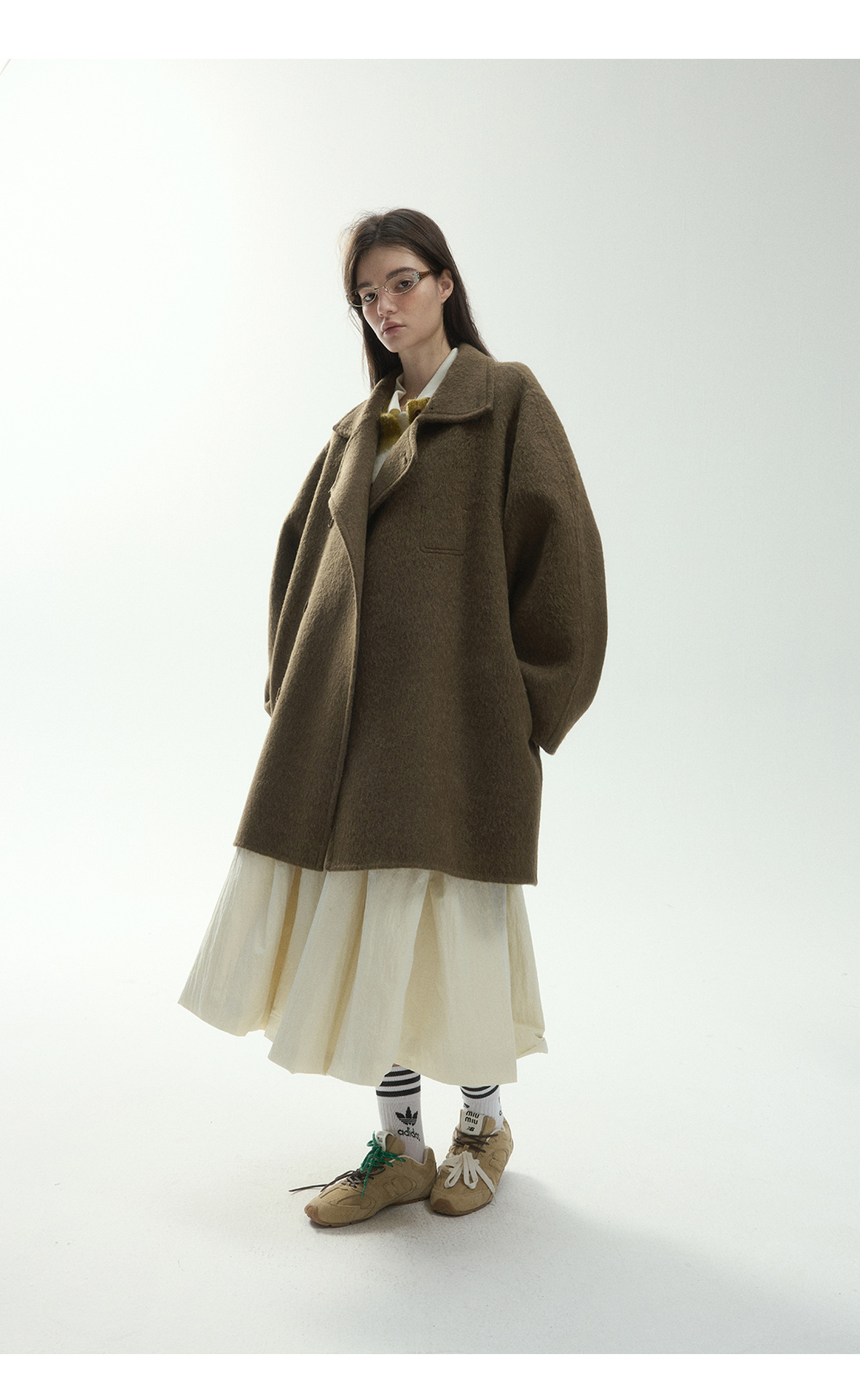 [시간] 새 양 양모 설리 봉쇄 느슨한 옷깃 양면 양면 양면 양면 양복 코트 V7729