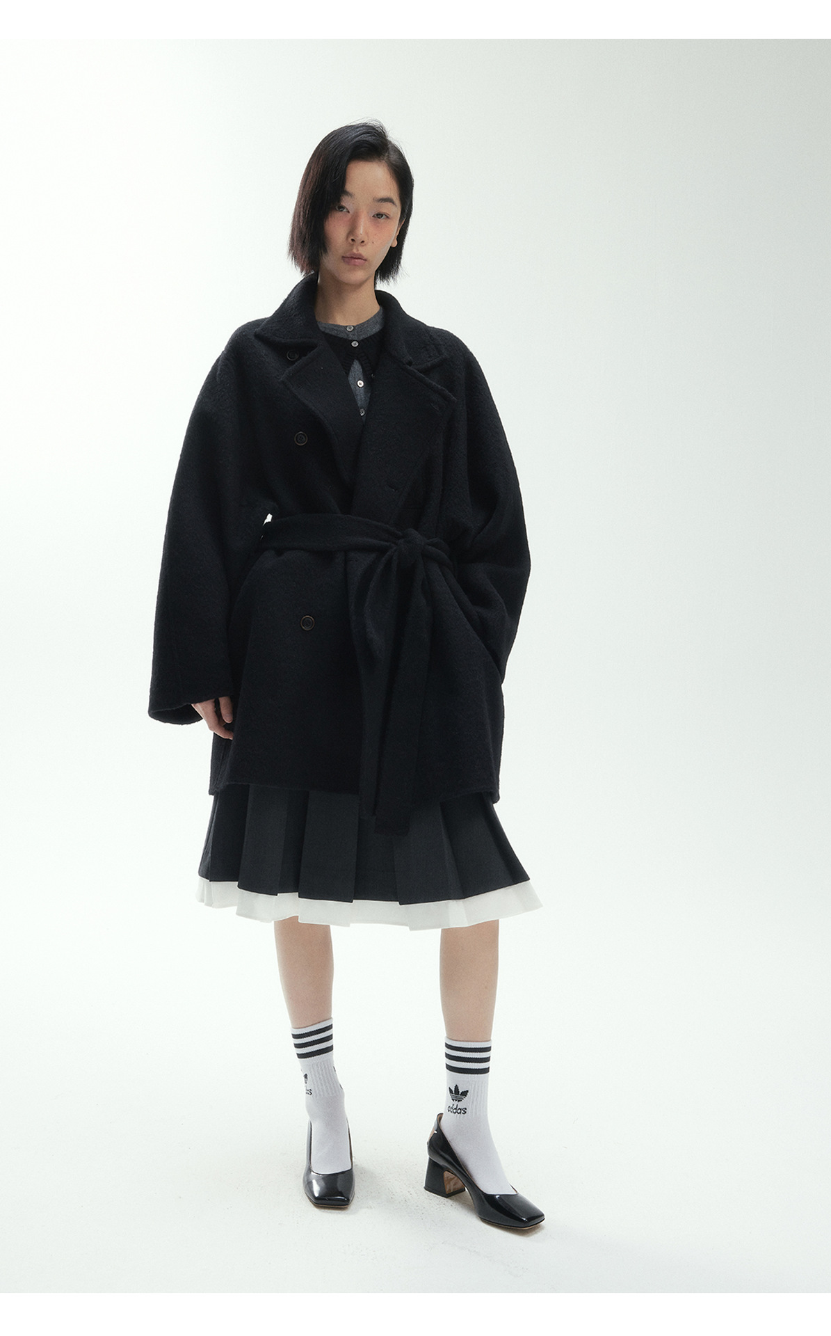 [시간] 새 양 양모 설리 봉쇄 느슨한 옷깃 양면 양면 양면 양면 양복 코트 V7729스토어 가기
