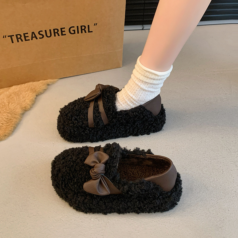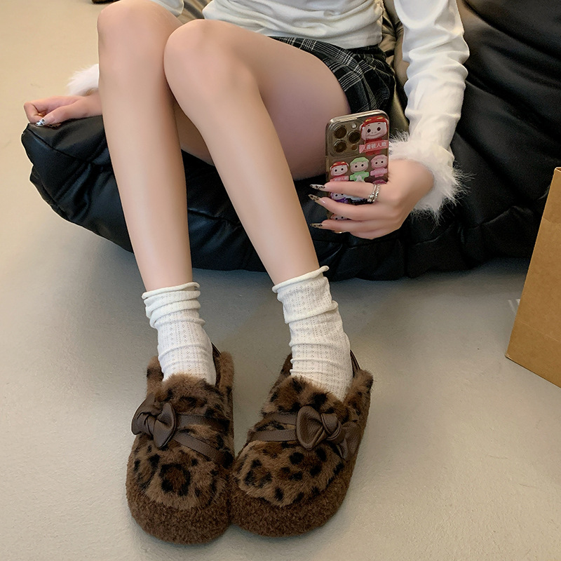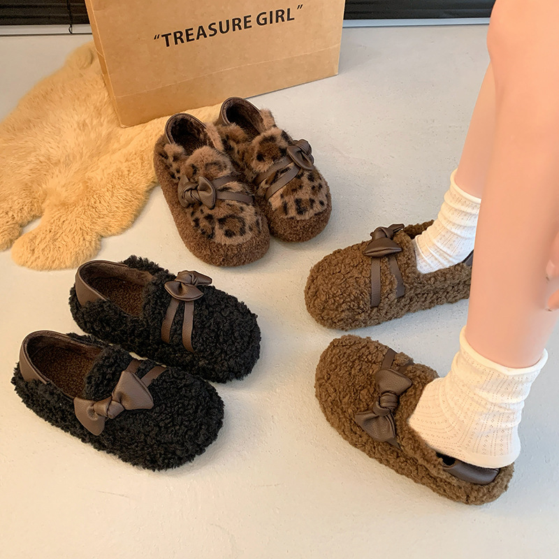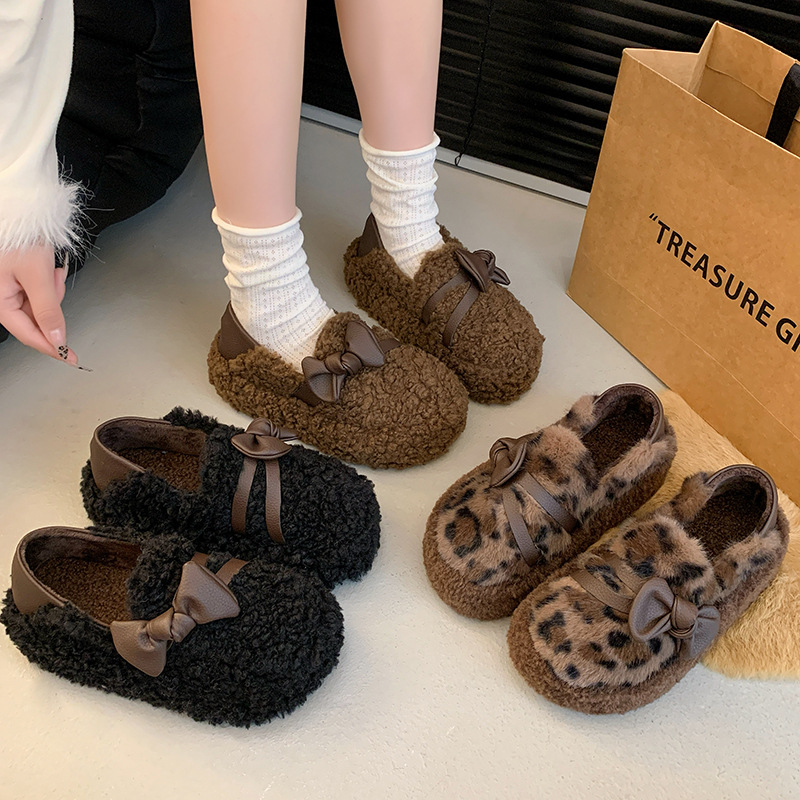 2024 가을과 겨울 새 기모 두꺼운 바닥 콩 신발 여성 한국 스타일 겉옷 패션 나비 그물 붉은 마오 마오 여성 신발스토어 가기