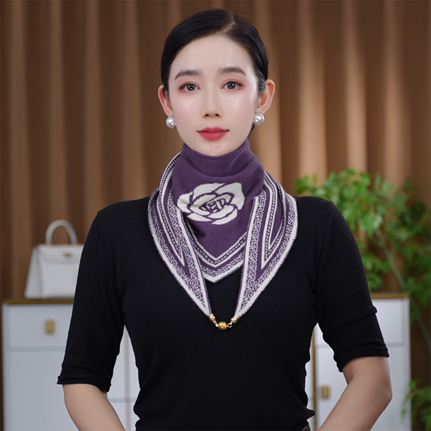 가을과 겨울 새로운 동백 컬러 매칭 마그네틱 버클 트라이앵글 스카프 유행 우아한 한국 다목적 니트스토어 가기