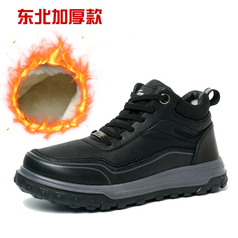 2024 겨울 새로운 따뜻한 스노우 부츠 남성 신발 두꺼운 울 야외 코튼 슈즈 동북 기모 방탄 스플래쉬 방수 방수