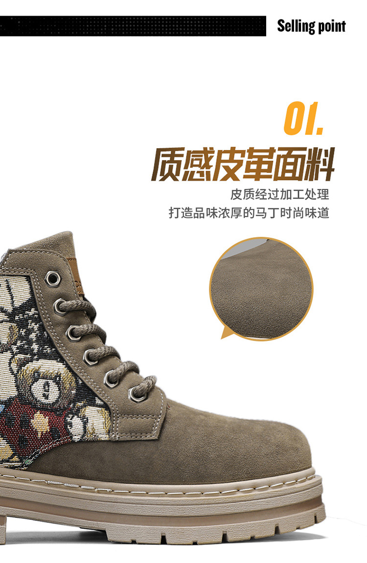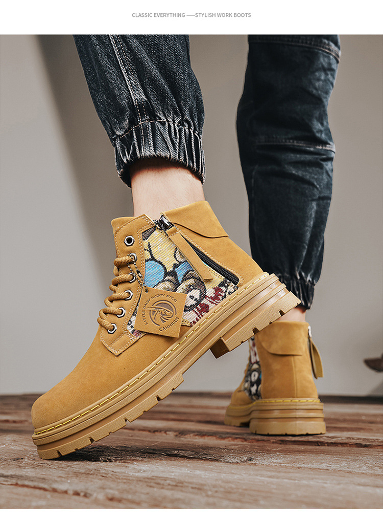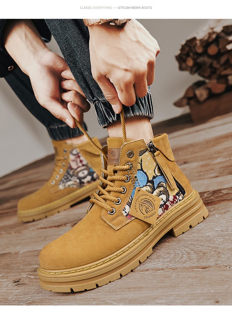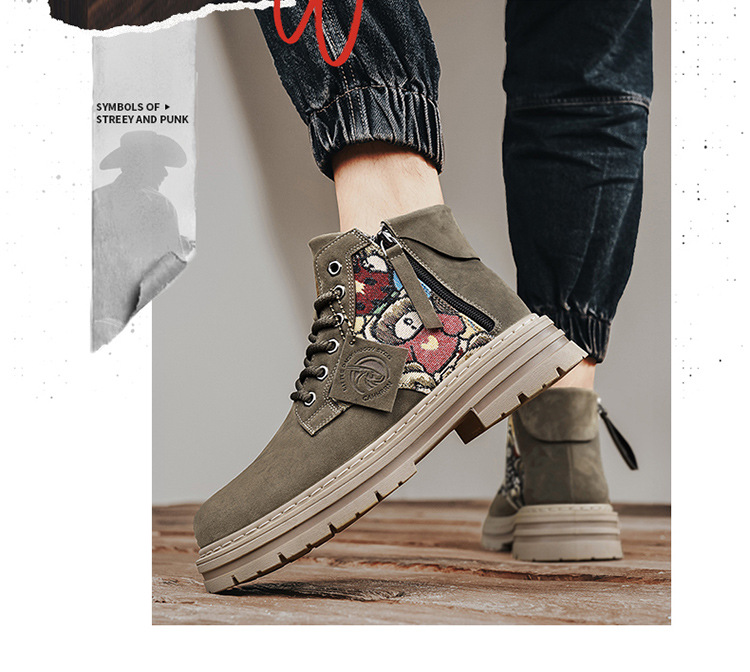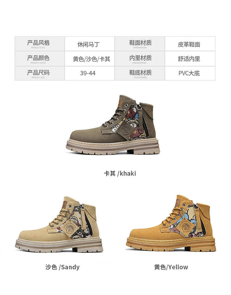 마틴 부츠 영국 스타일 두꺼운 하단 짧은 부츠 가을 및 겨울 새로운 도착 사이드 지퍼 툴링 부츠 남성용 하이 탑 대황 부츠