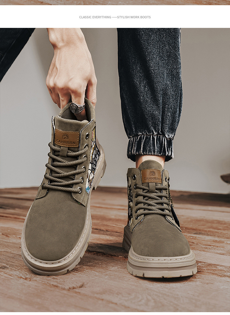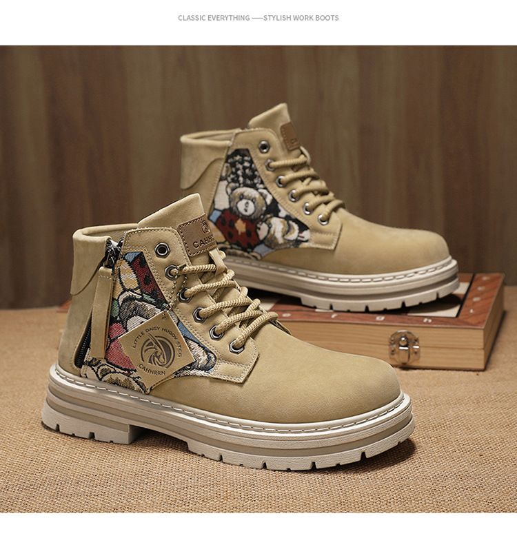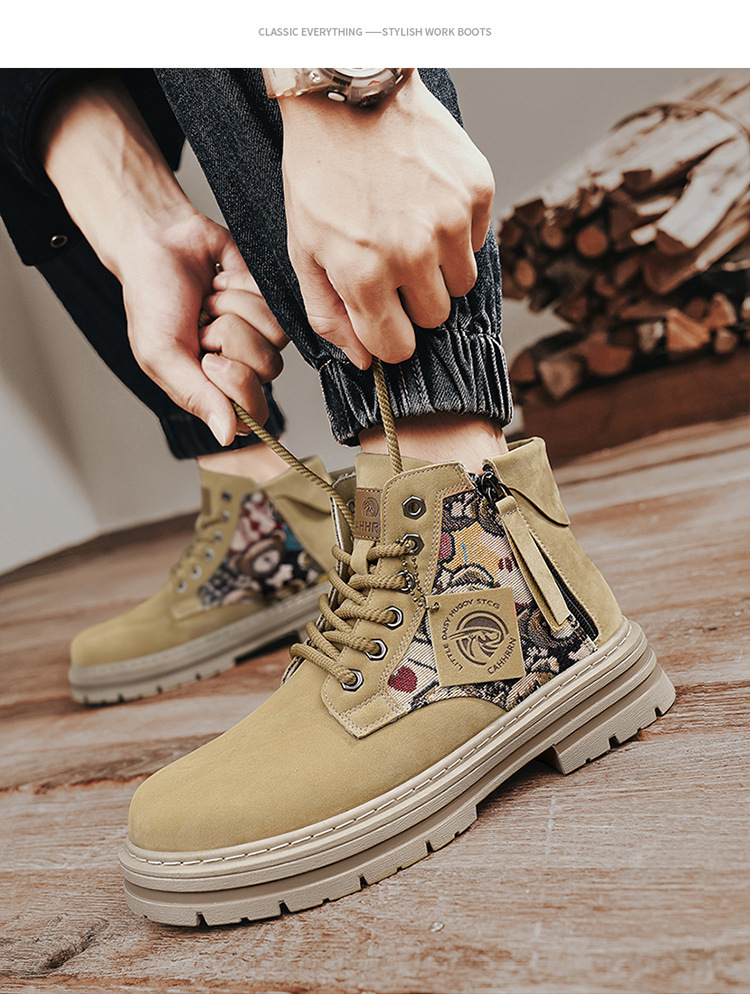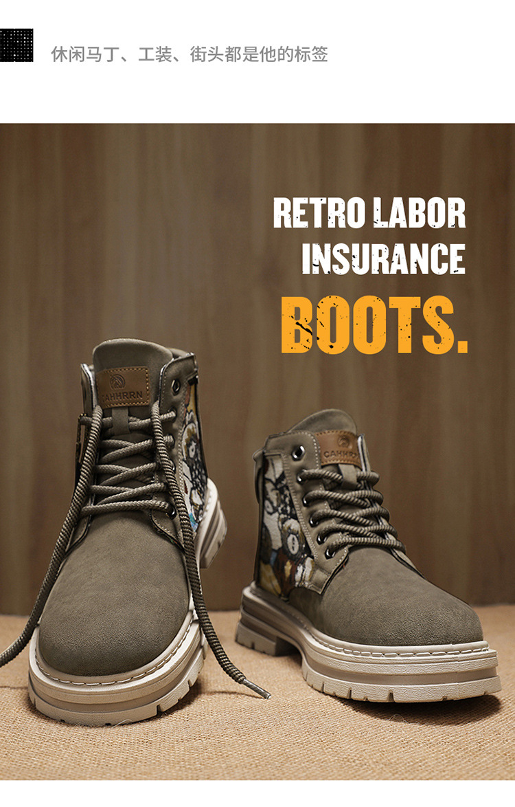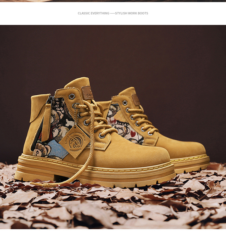 마틴 부츠 영국 스타일 두꺼운 하단 짧은 부츠 가을 및 겨울 새로운 도착 사이드 지퍼 툴링 부츠 남성용 하이 탑 대황 부츠