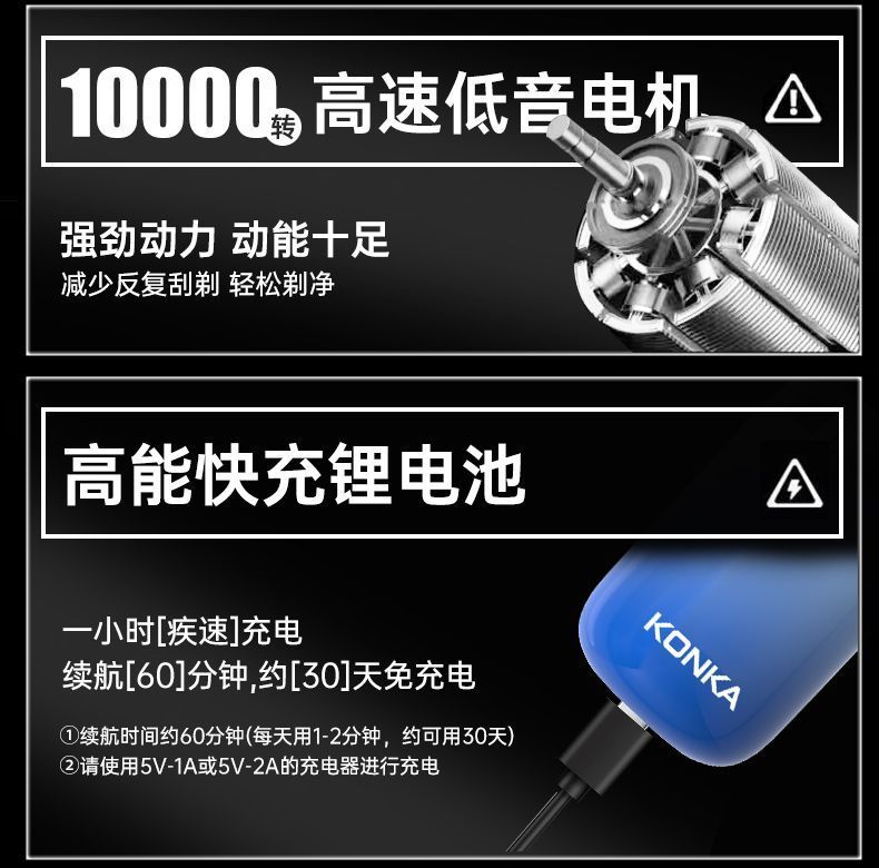 콘카 6 페이지 면도기 전기 고출력 그라디언트 스마트 휴대용 미니 자동차 면도기 충전스토어 가기