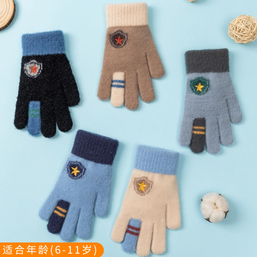 2024 남성과 어린이를위한 장갑 겨울 만화 니트 감기 방지 따뜻한 플립 커버 어린이와 학생을위한 따뜻한 글쓰기스토어 가기