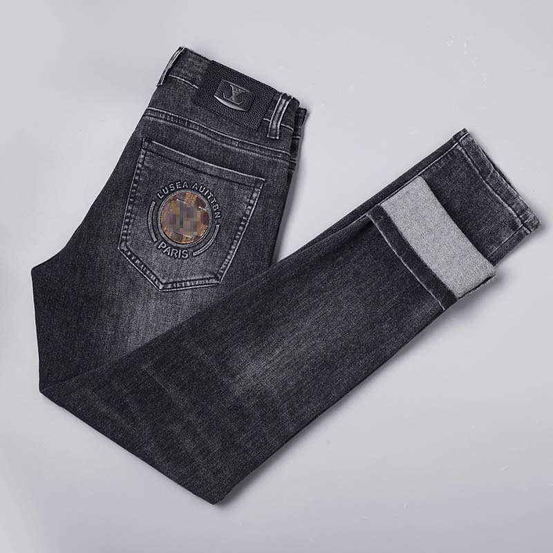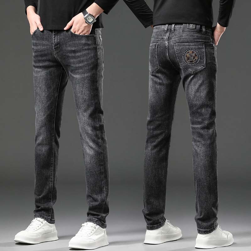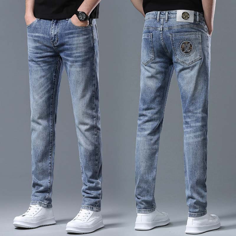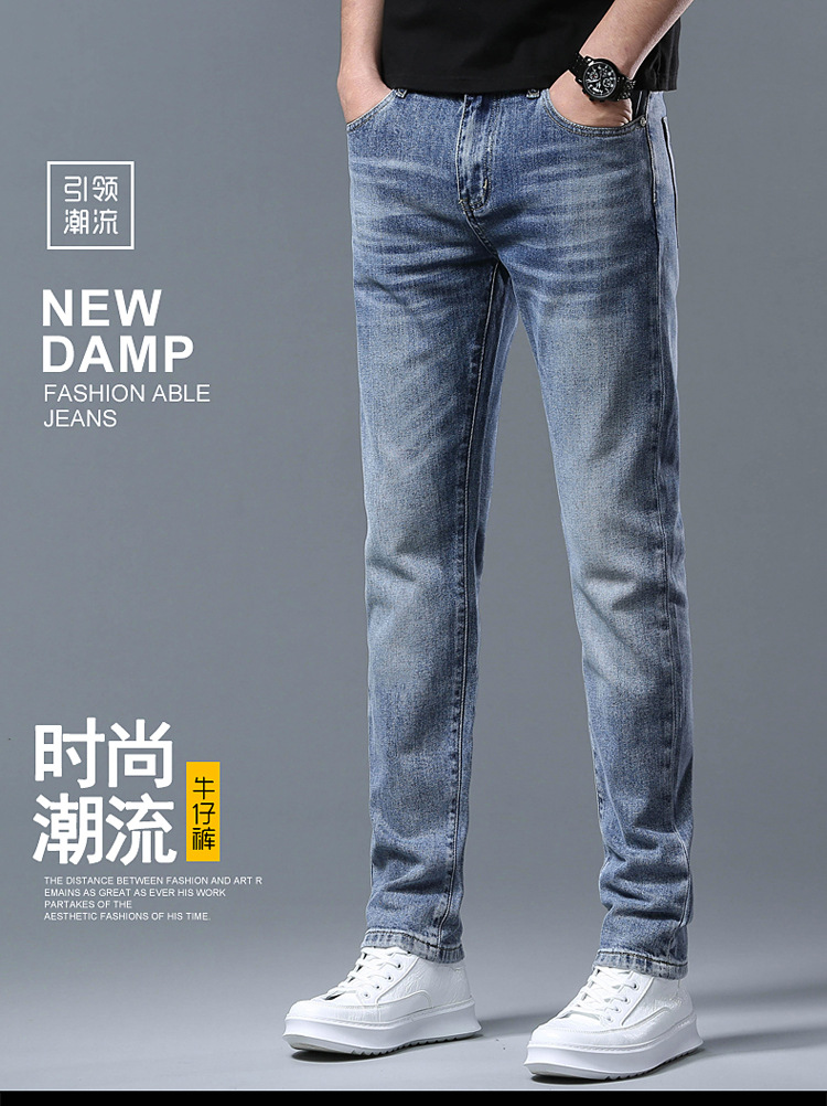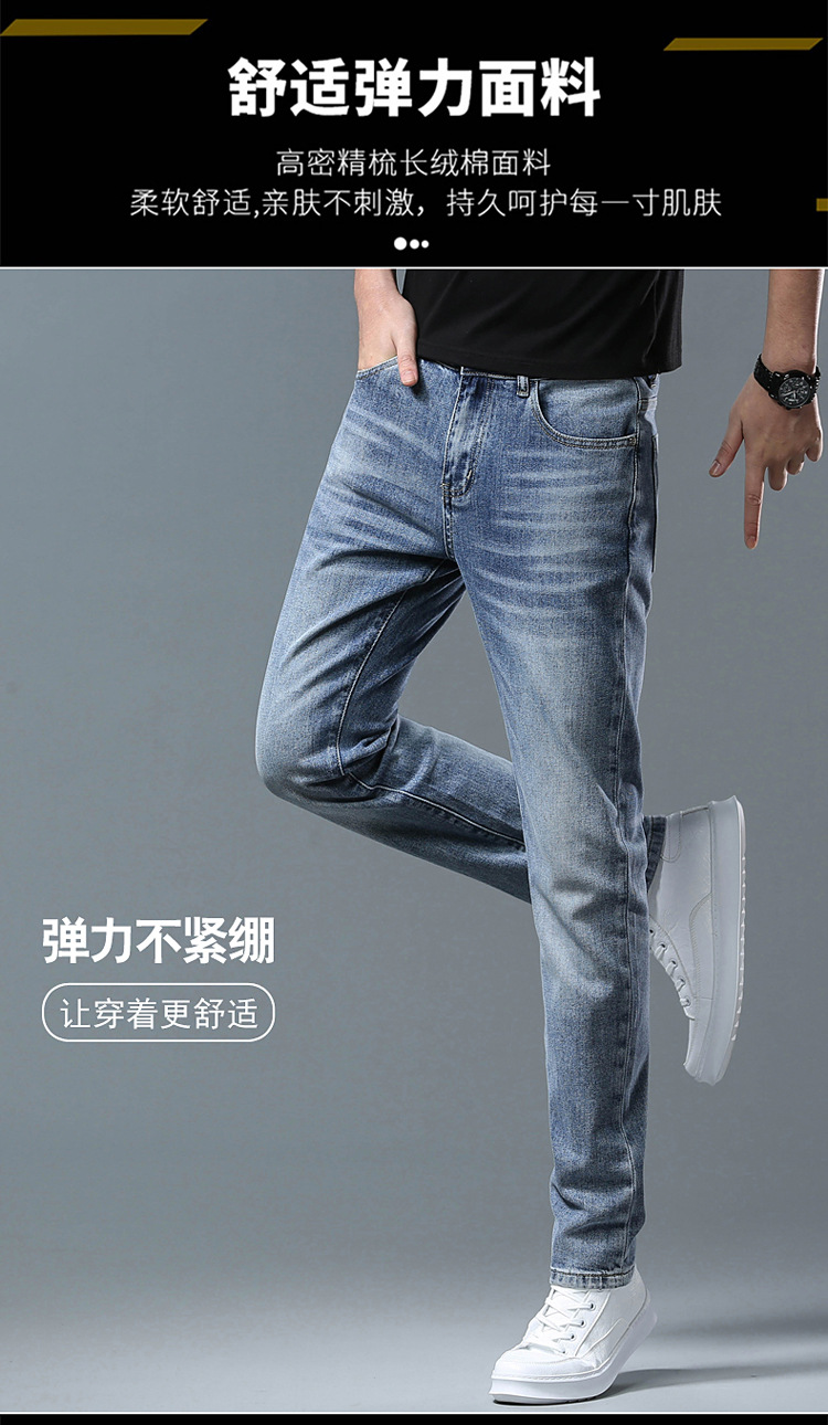 트렌디 한 브랜드 청바지 남성용 라이트 럭셔리 유럽 상품 더피 핸섬 키 슬림 룩 캐주얼 슬림 핏 작은 발 마개 바지 남성용 바지 무료 배송스토어 가기