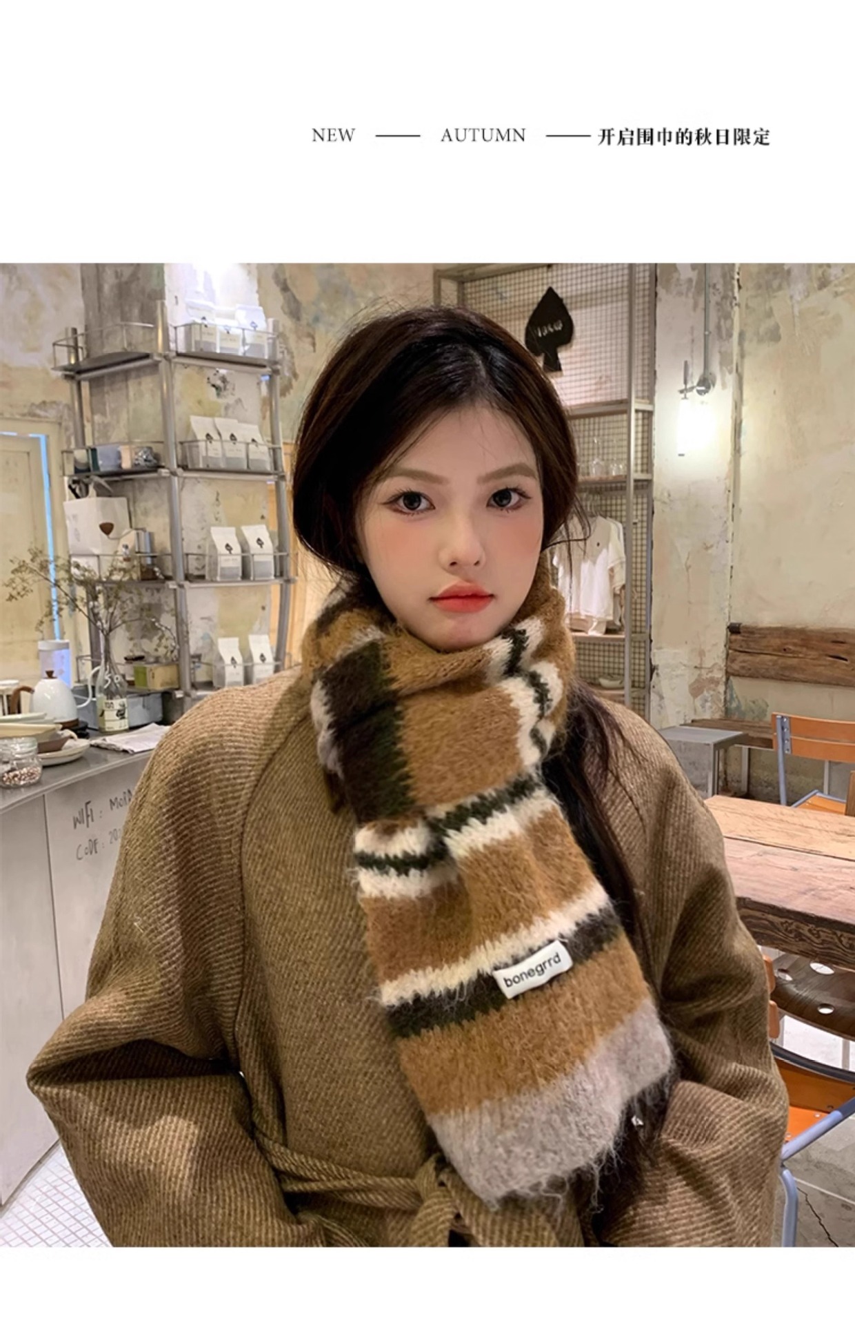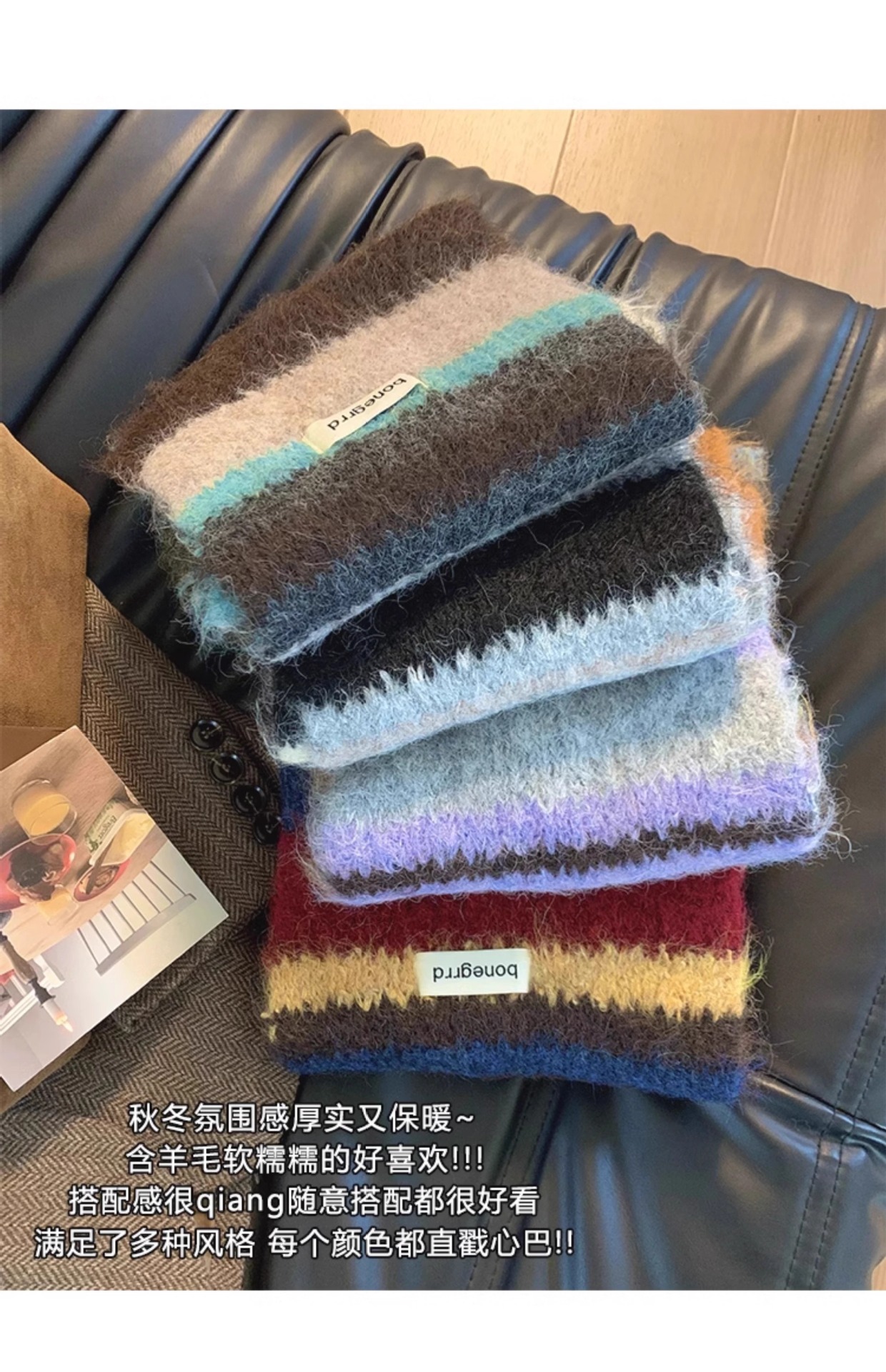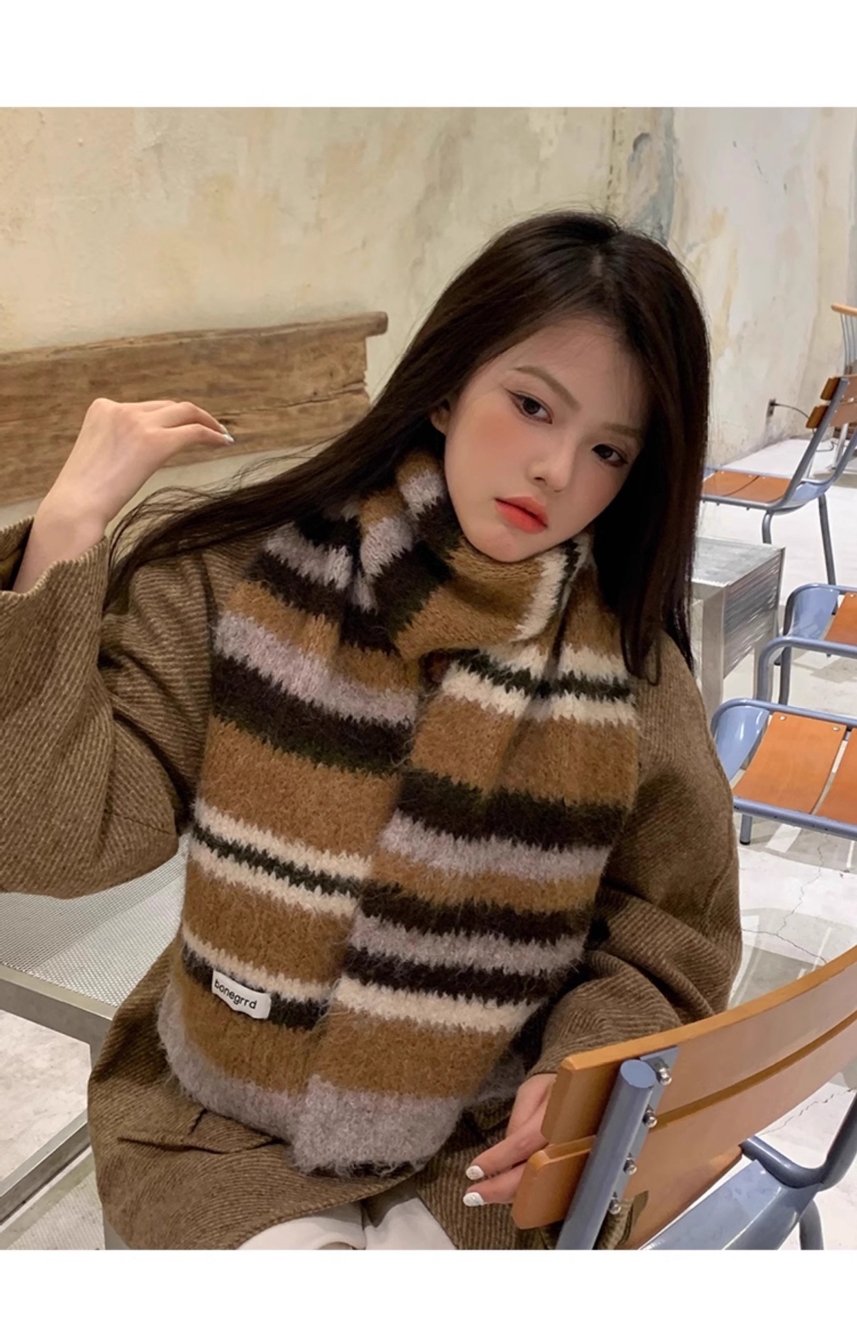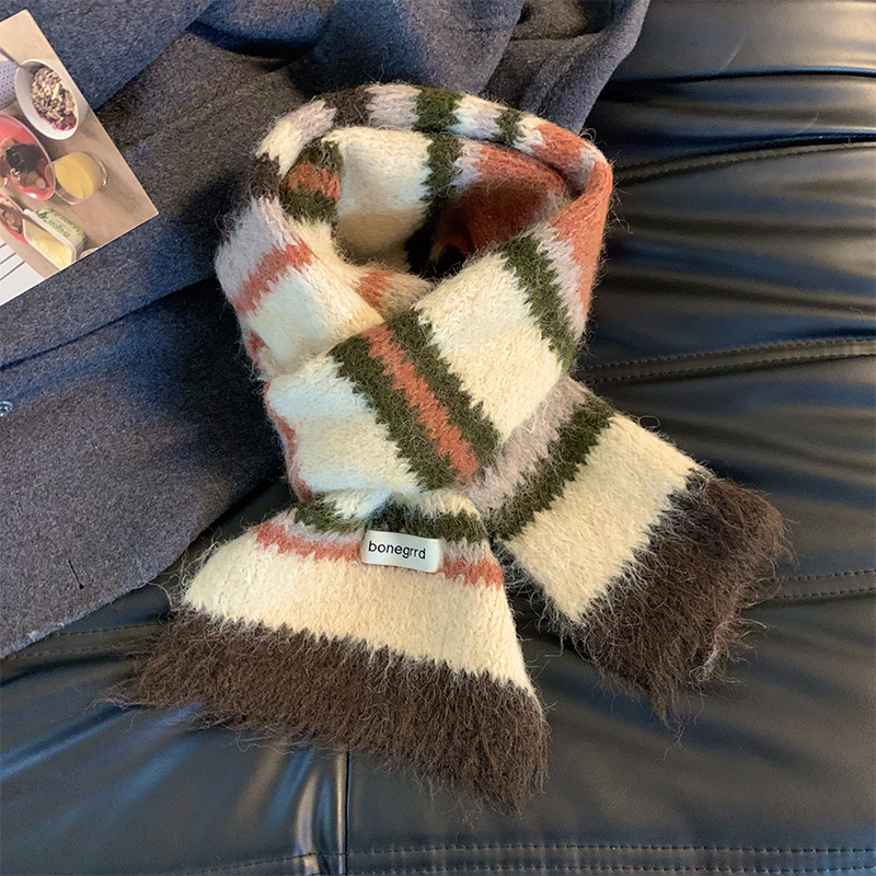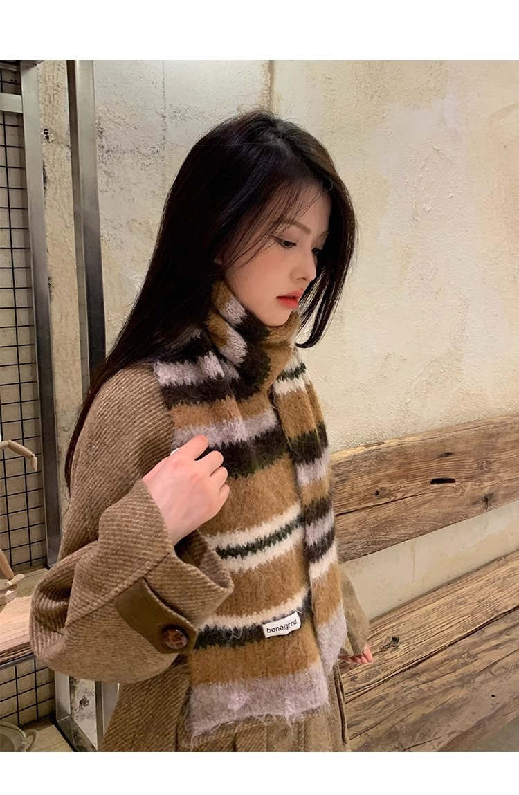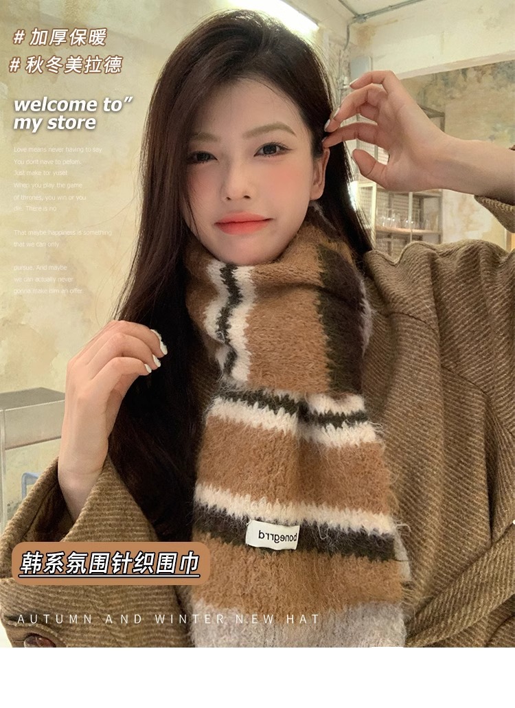 2024 새로운 한국식 양모 대비 줄무늬 니트 스카프 여성의 가을과 겨울 따뜻한 올 매치 학생 스카프 패션스토어 가기