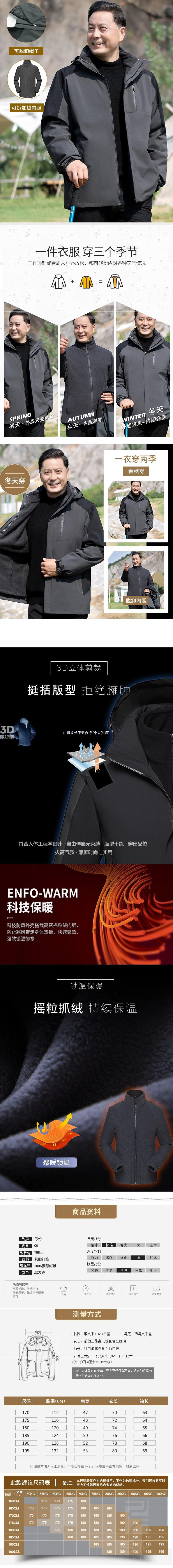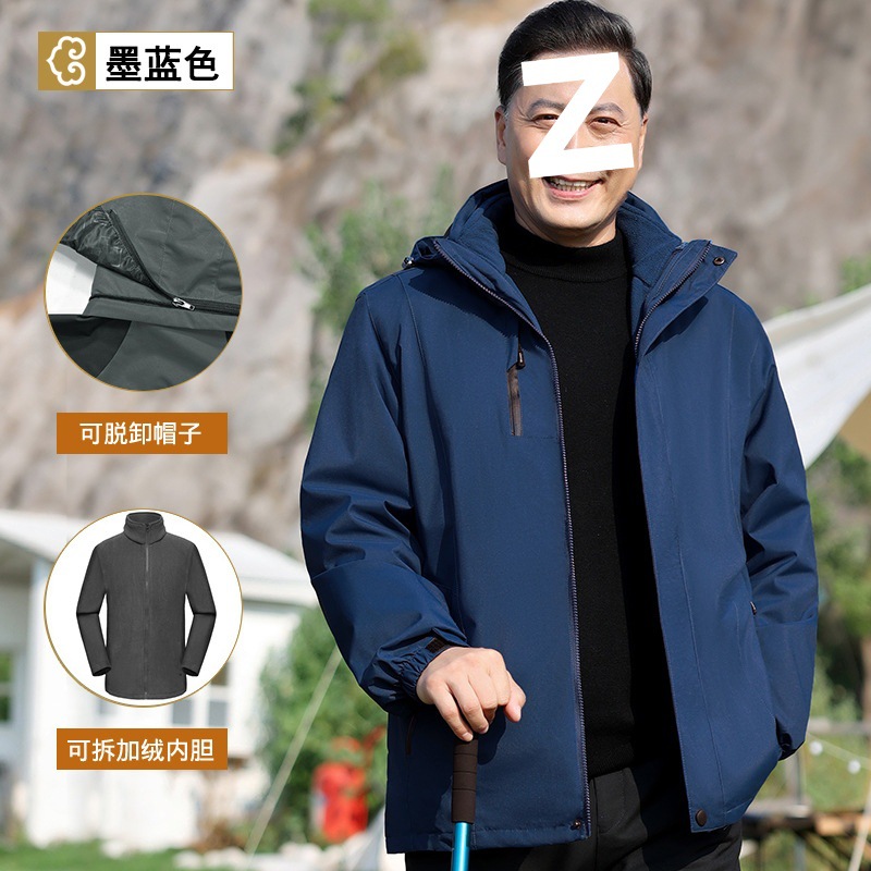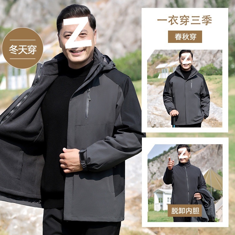중년 및 노인 남성 재킷을위한 중년 남성 3 대 1 재킷 겨울 옷을위한 아빠의 봄과 가을 외부 세트스토어 가기