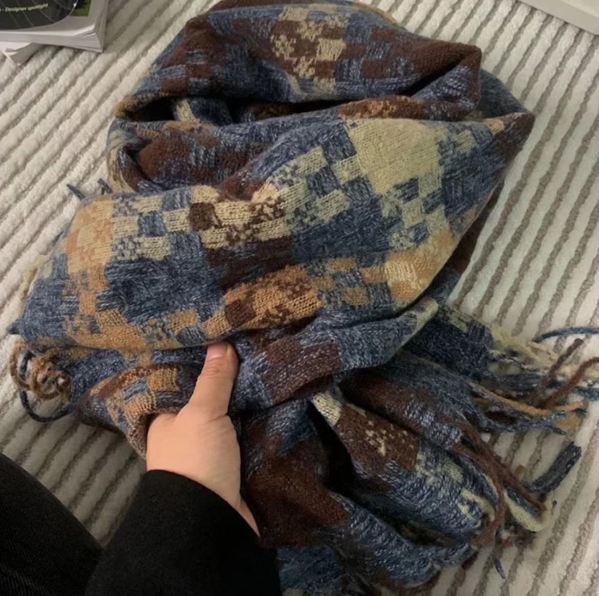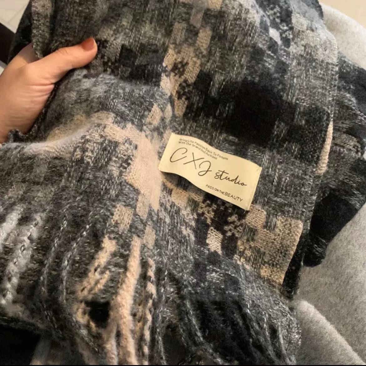 스카프 겨울 2025 신상 가을 겨울 분위기 있는 한국 스타일 체크무늬 프린지 남녀 커플용 따뜻한 학생용 고급스러운 느낌스토어 가기