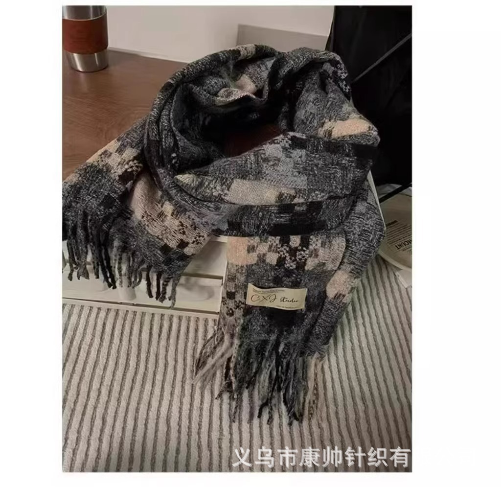 스카프 겨울 2025 신상 가을 겨울 분위기 있는 한국 스타일 체크무늬 프린지 남녀 커플용 따뜻한 학생용 고급스러운 느낌