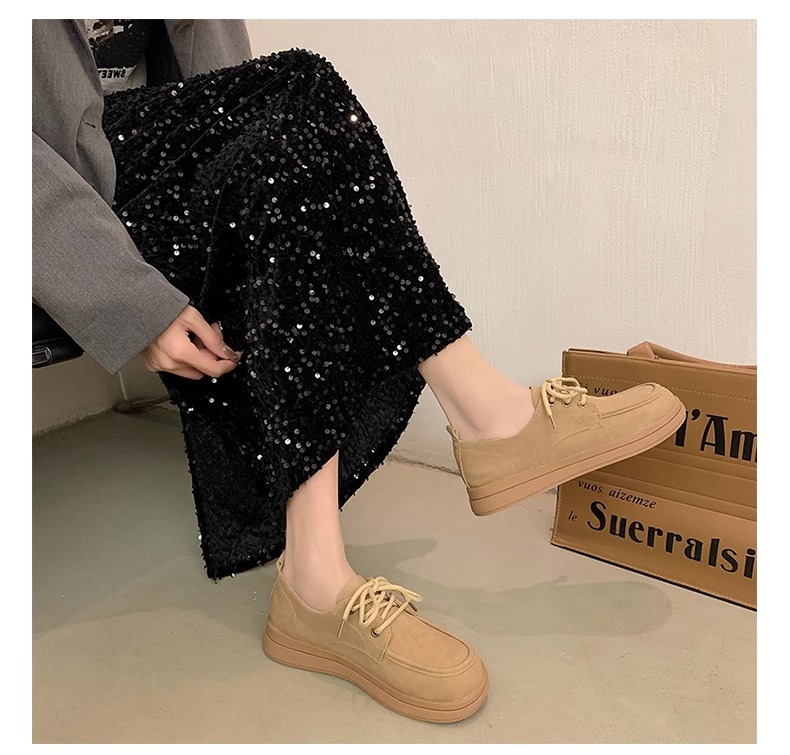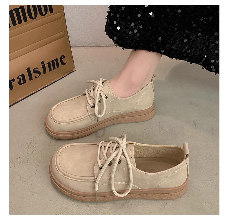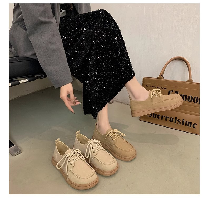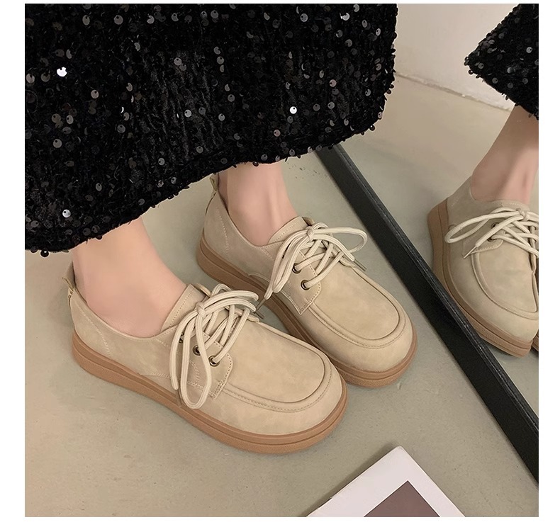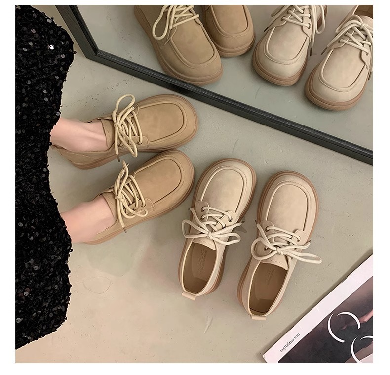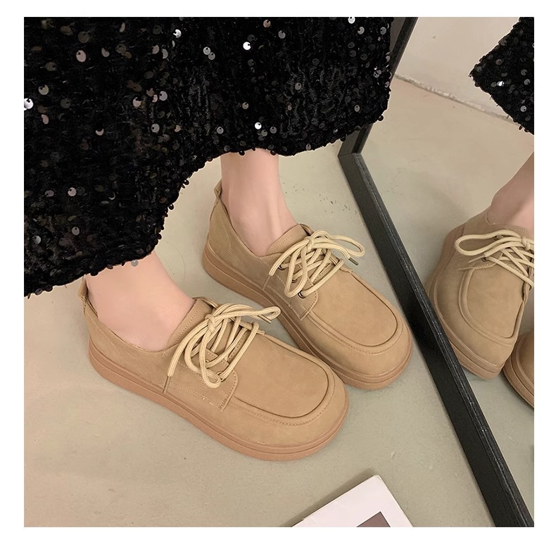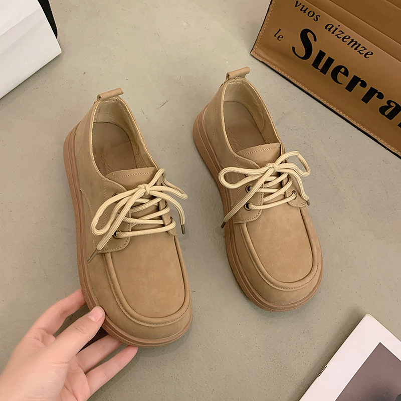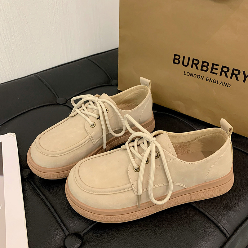 영국 스타일의 작은 가죽 신발 여성의 봄과 가을 새로운 올 매치 플랫 신발 레트로 레이스 업 버켄 버그 신발 캐주얼 보드 신발스토어 가기