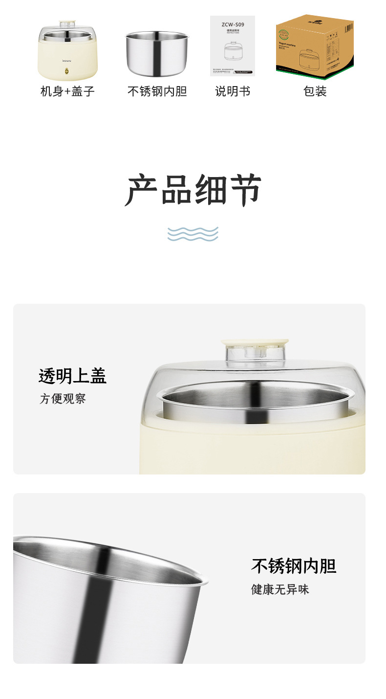 카우 ZCW-S09 대용량 요구르트 기계 가정용 발효 기계 수제 요구르트 자동 일정한 온도 발효 기계