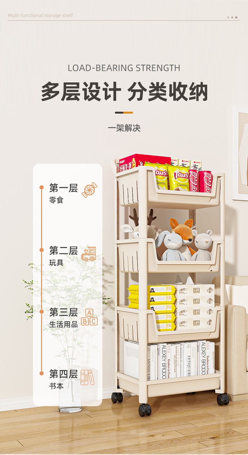 작은 카트 저장 랙 가정용 간식 바닥 다층 거실 저장 가방 랙 모바일 주방 과일 및 야채 바구니